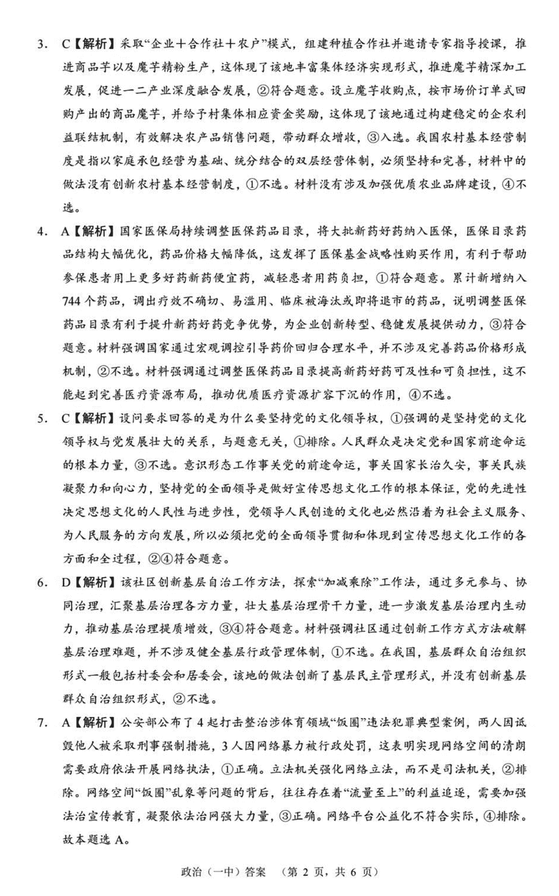 政治试题及答案解析