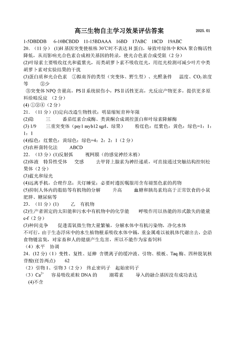 江苏扬州中学2025届高三上学期1月自主评估生物考试已于近日开考,为方便考生考后及时查看考试情况,查漏补缺、弥补不足,本文整理了试题答案解析相关信息!