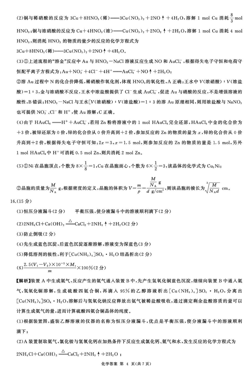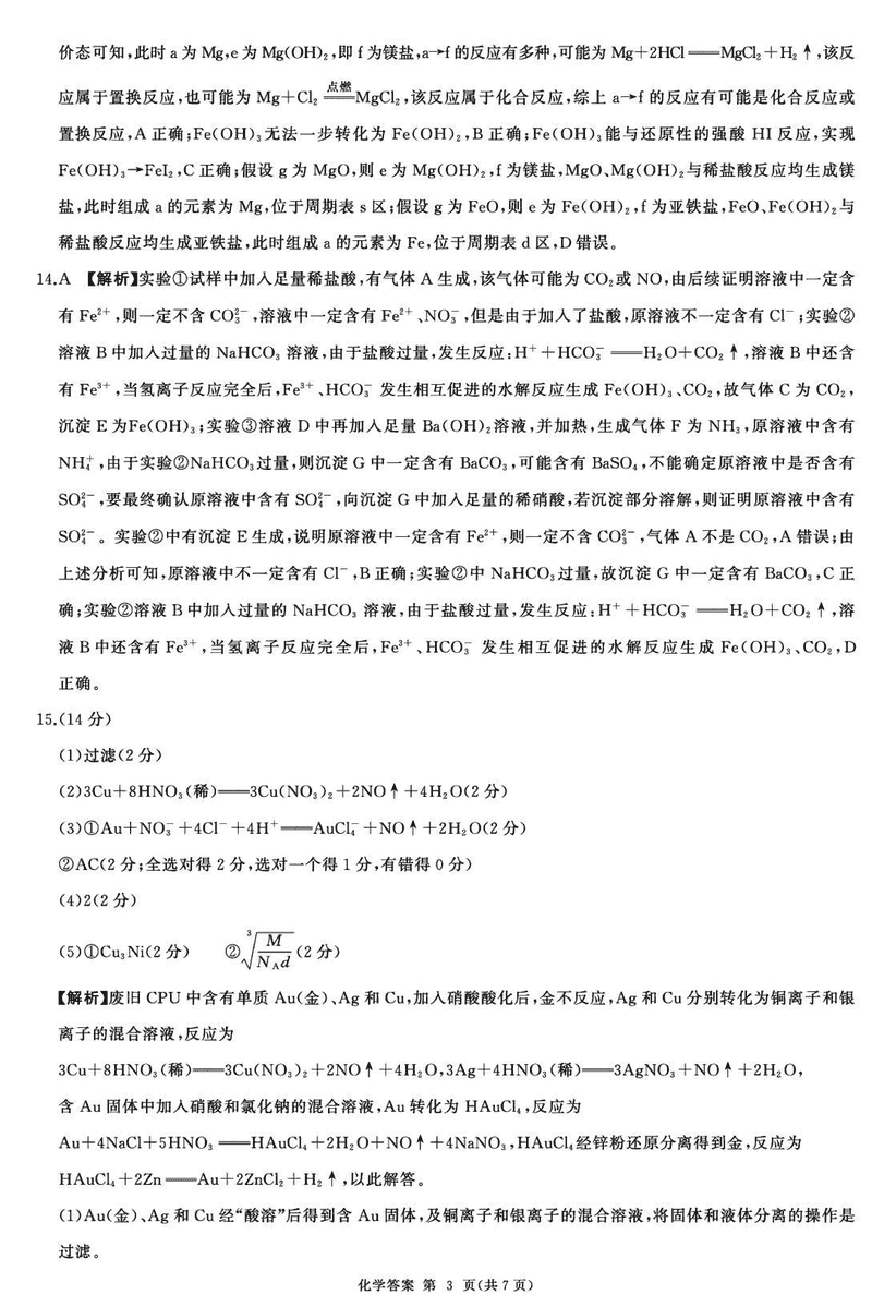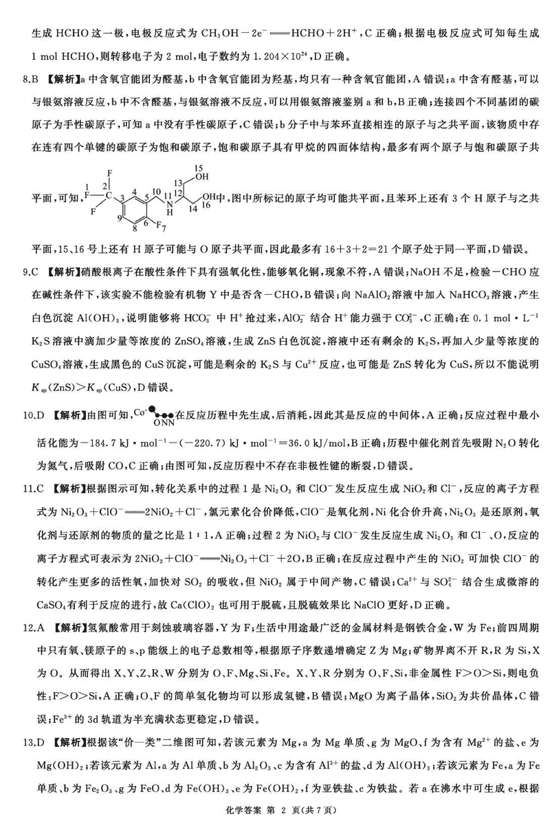 化学试题及答案解析