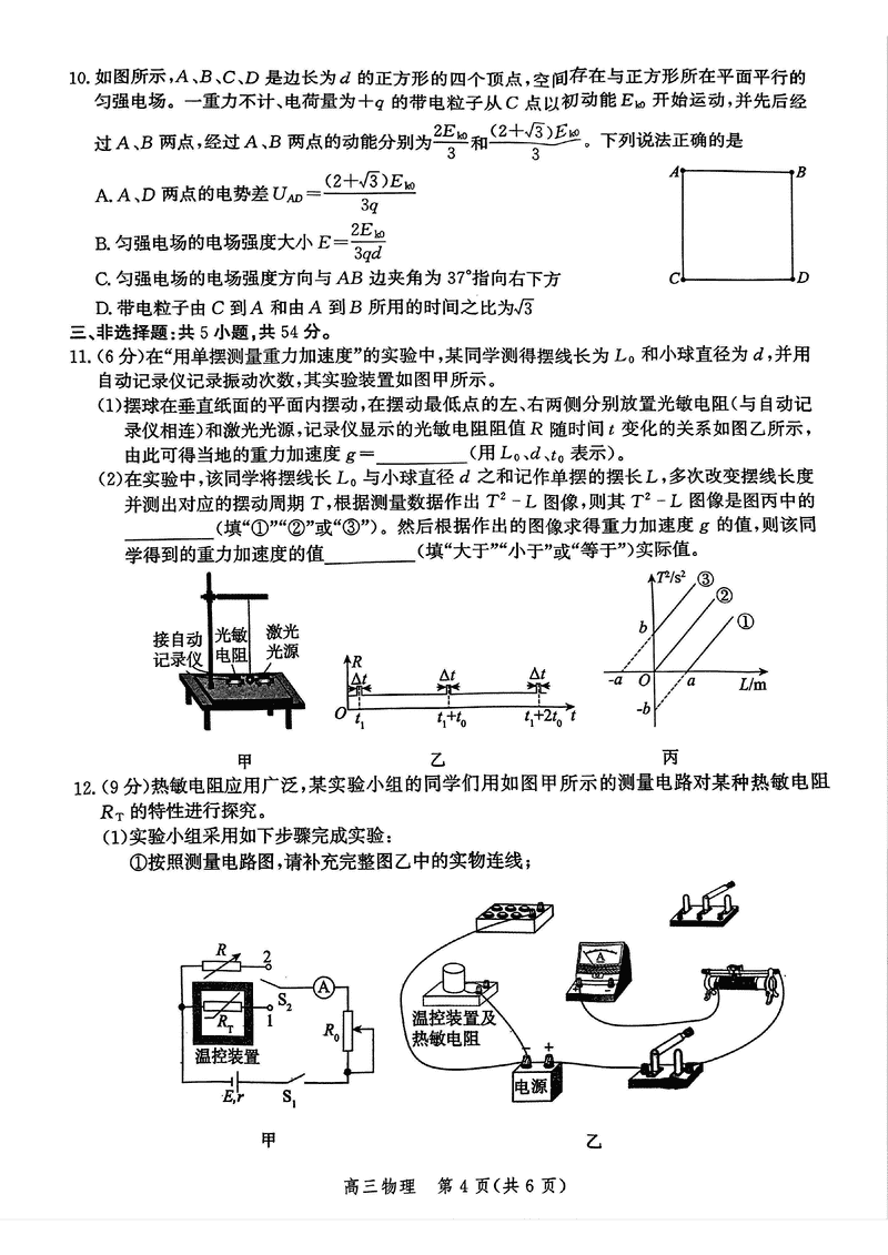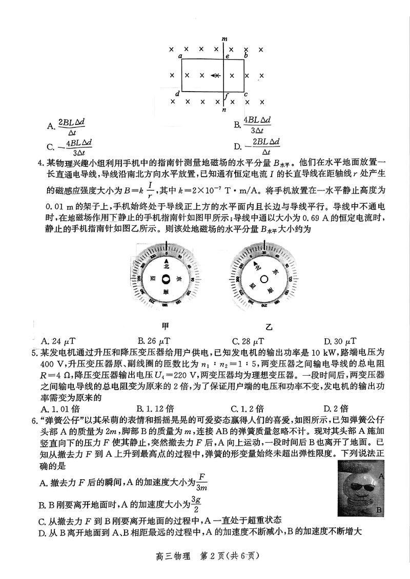 河北邯郸2025届高三上学期第二次调研监测物理试题及答案