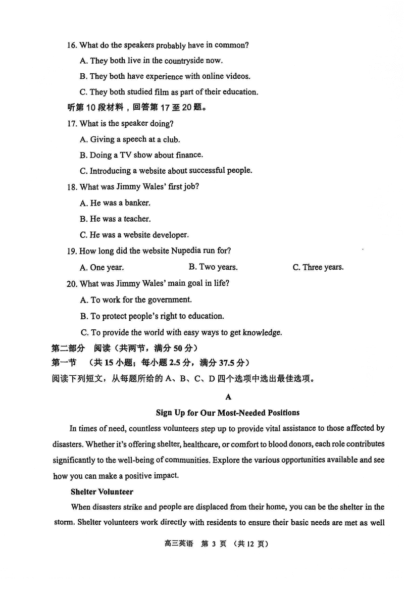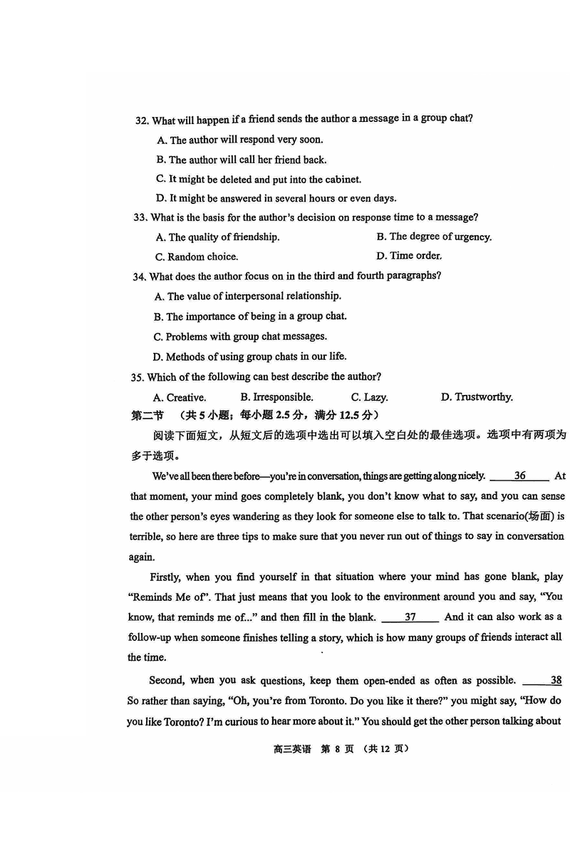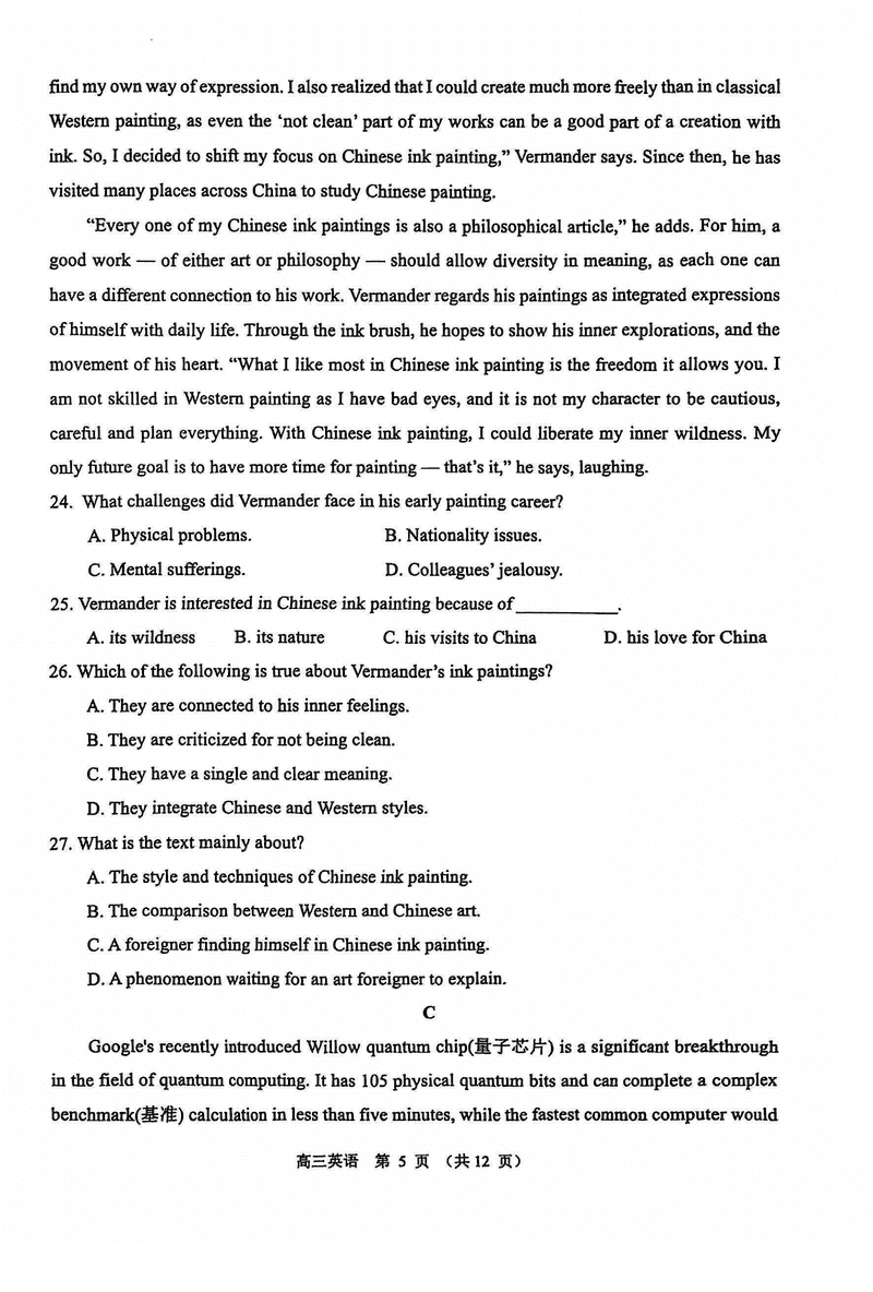 常州市2024-2025学年高三上学期期末英语试题及答案