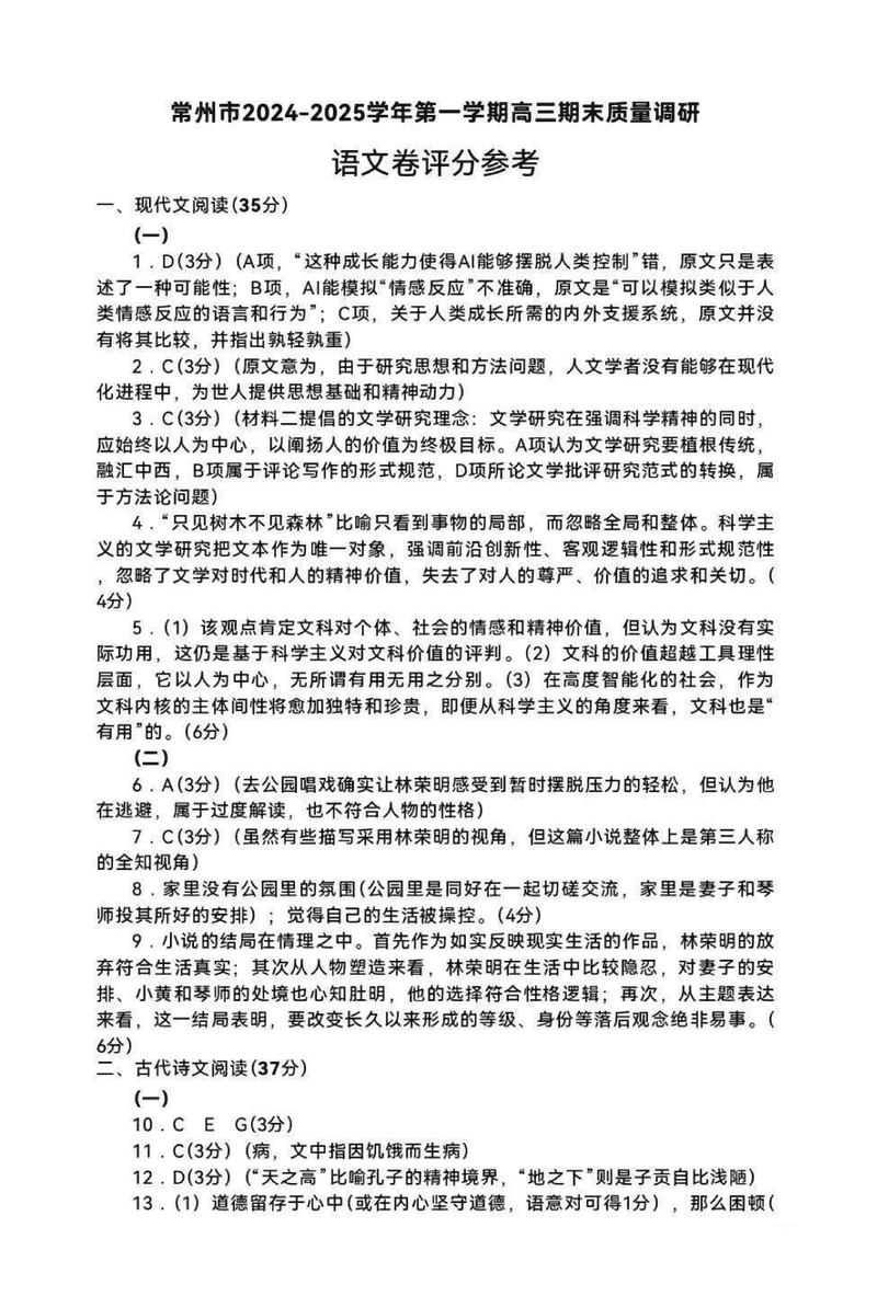 常州市2024-2025学年高三上学期期末语文试题及答案