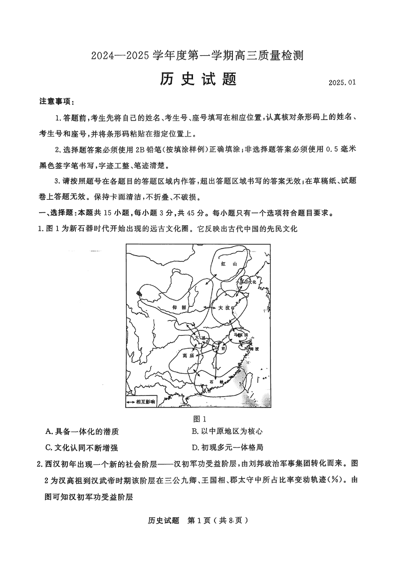 济宁2024-2025学年高三上学期1月期末历史试题及答案