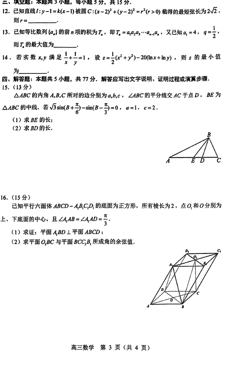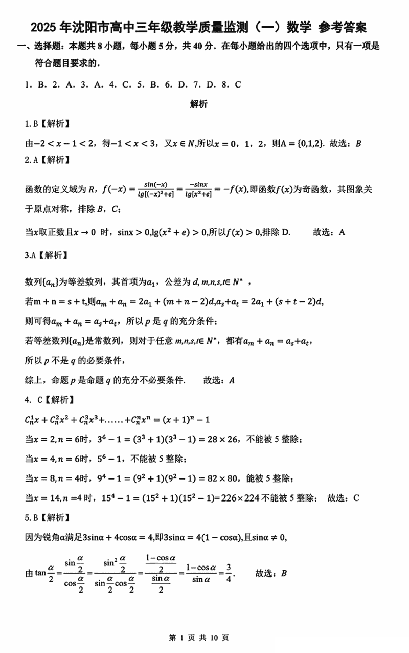 沈阳2025届高三上学期教学质量监测(一)数学考试已于近日开考,为方便考生考后及时查看考试情况,查漏补缺、弥补不足,本文整理了试题答案解析相关信息!