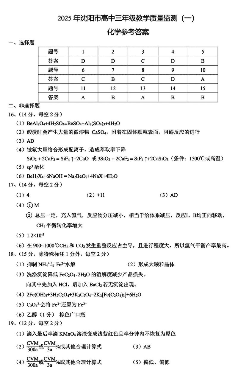 沈阳2025届高三上学期教学质量监测(一)化学考试已于近日开考,为方便考生考后及时查看考试情况,查漏补缺、弥补不足,本文整理了试题答案解析相关信息!