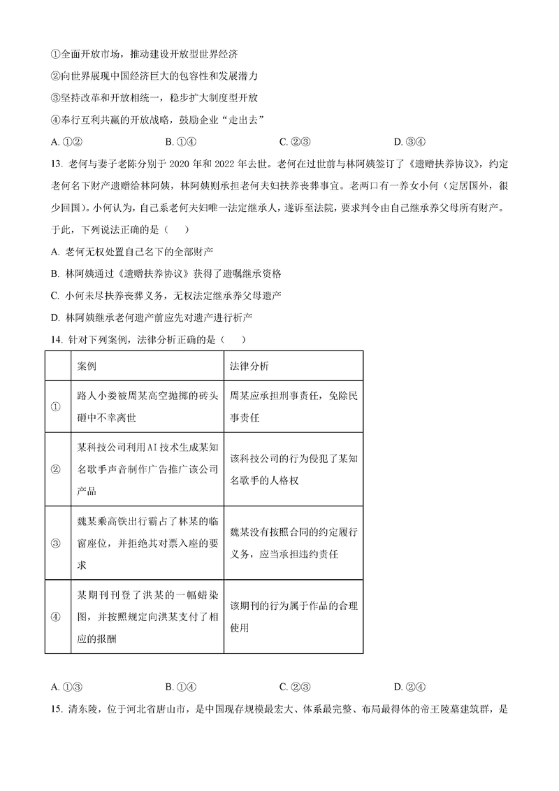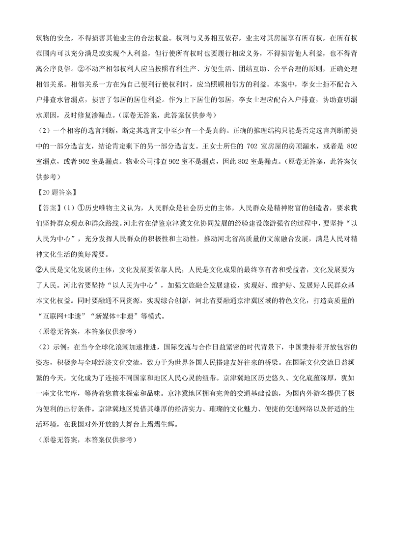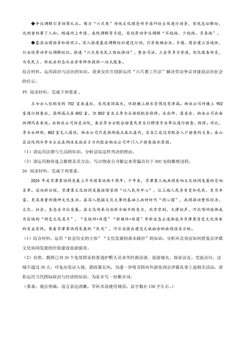 河北 文综试题
