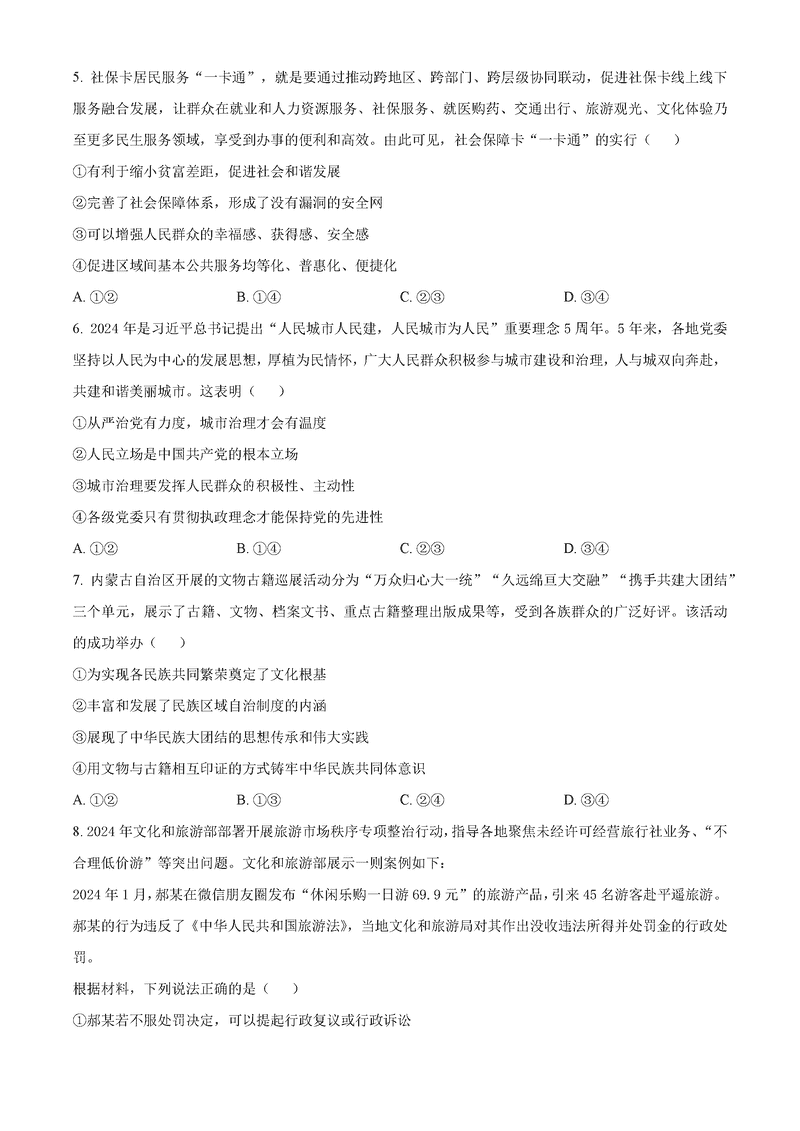 政治试题及答案解析