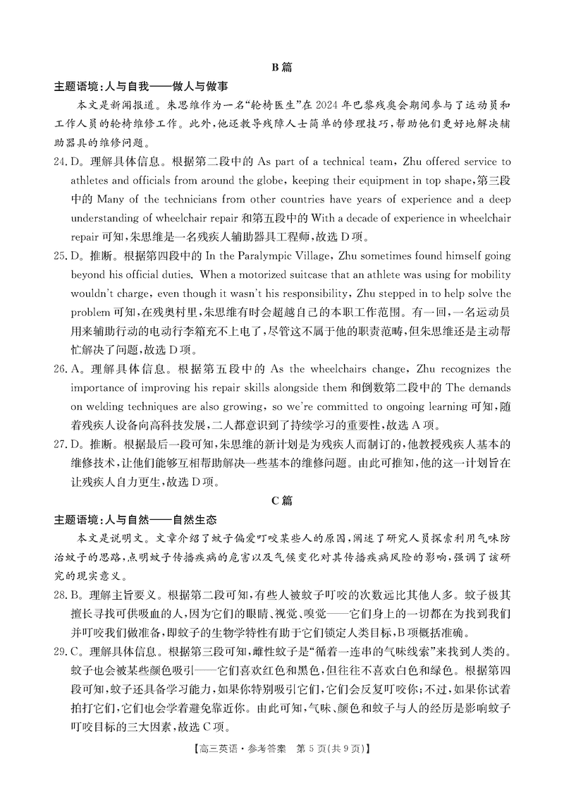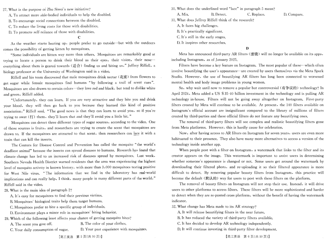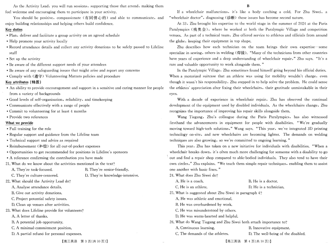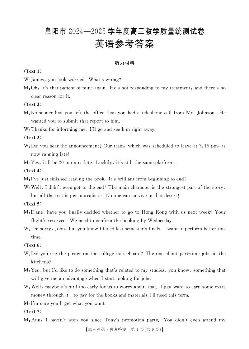 安徽阜阳2025届高三上学期教学质量统测英语试题及答案