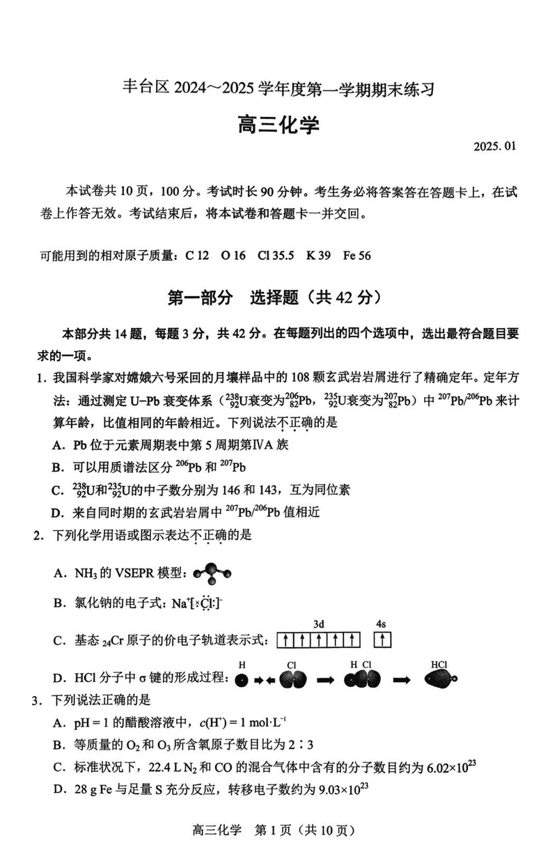 北京市丰台区2024-2025学年高三上学期期末化学考试已于近日开考,为方便考生考后及时查看考试情况,查漏补缺、弥补不足,本文整理了试题答案解析相关信息!