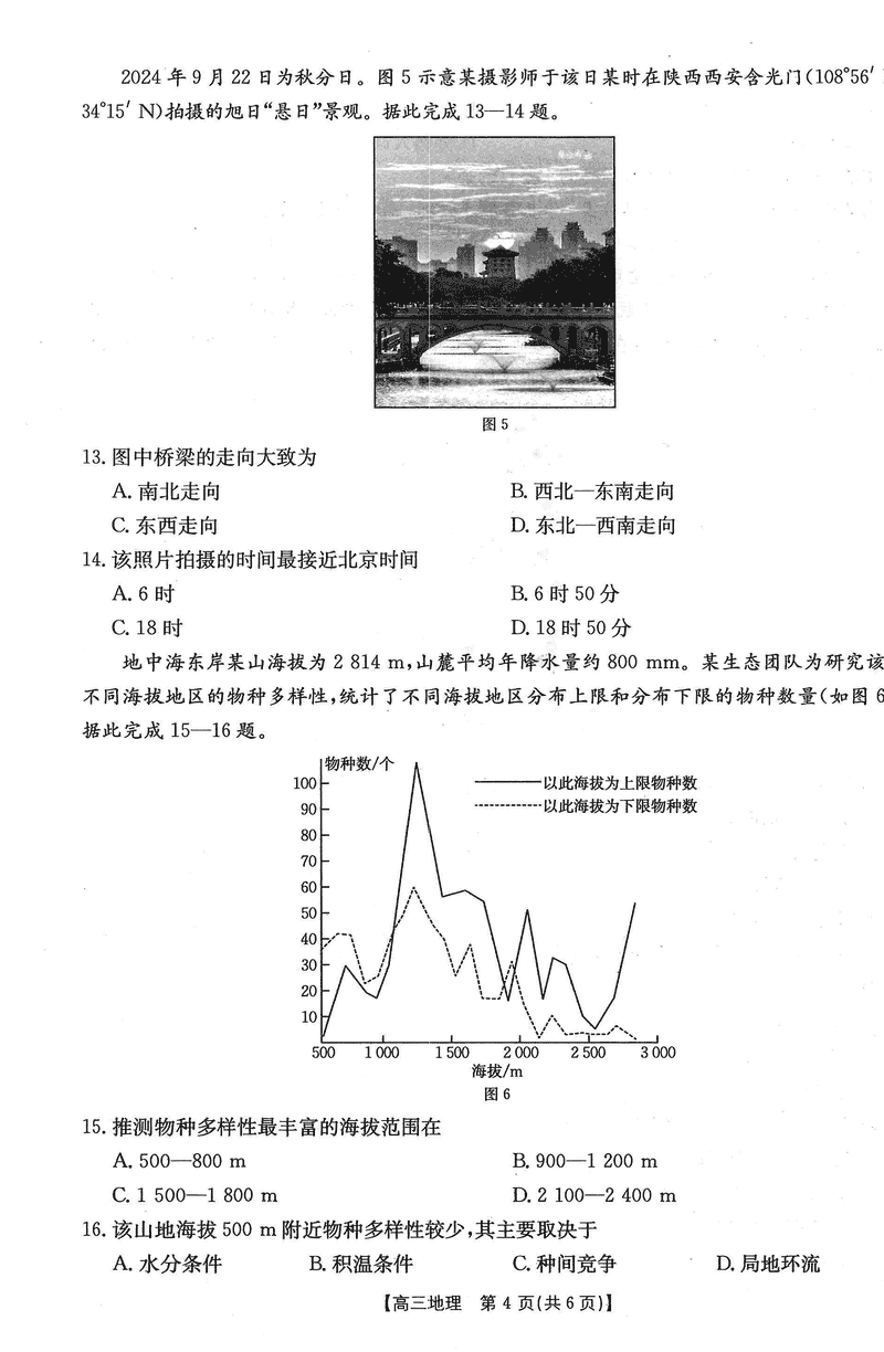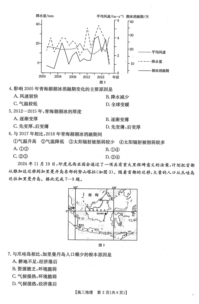 甘肃武威2025届高三上学期1月期末联考地理试题及答案