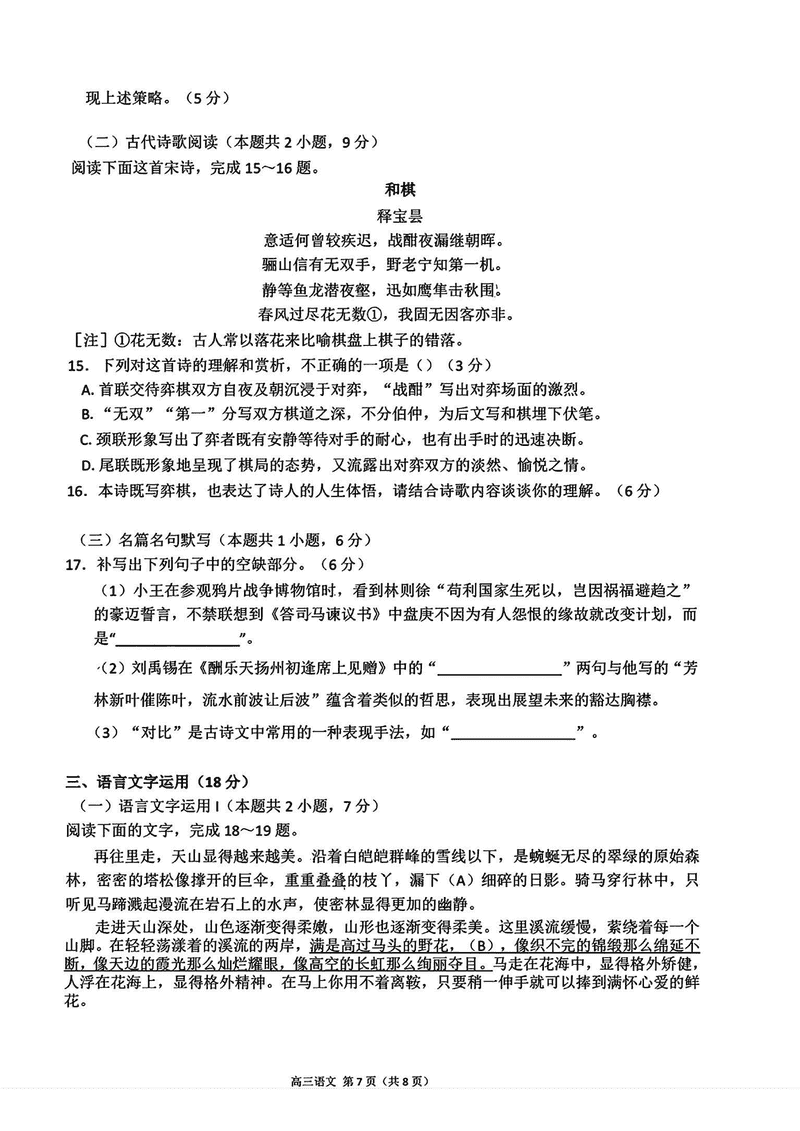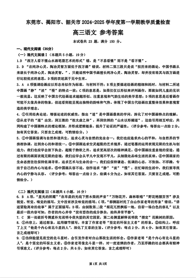 东莞市、揭阳市、韶关市2025年高三上学期期末语文试题及答案