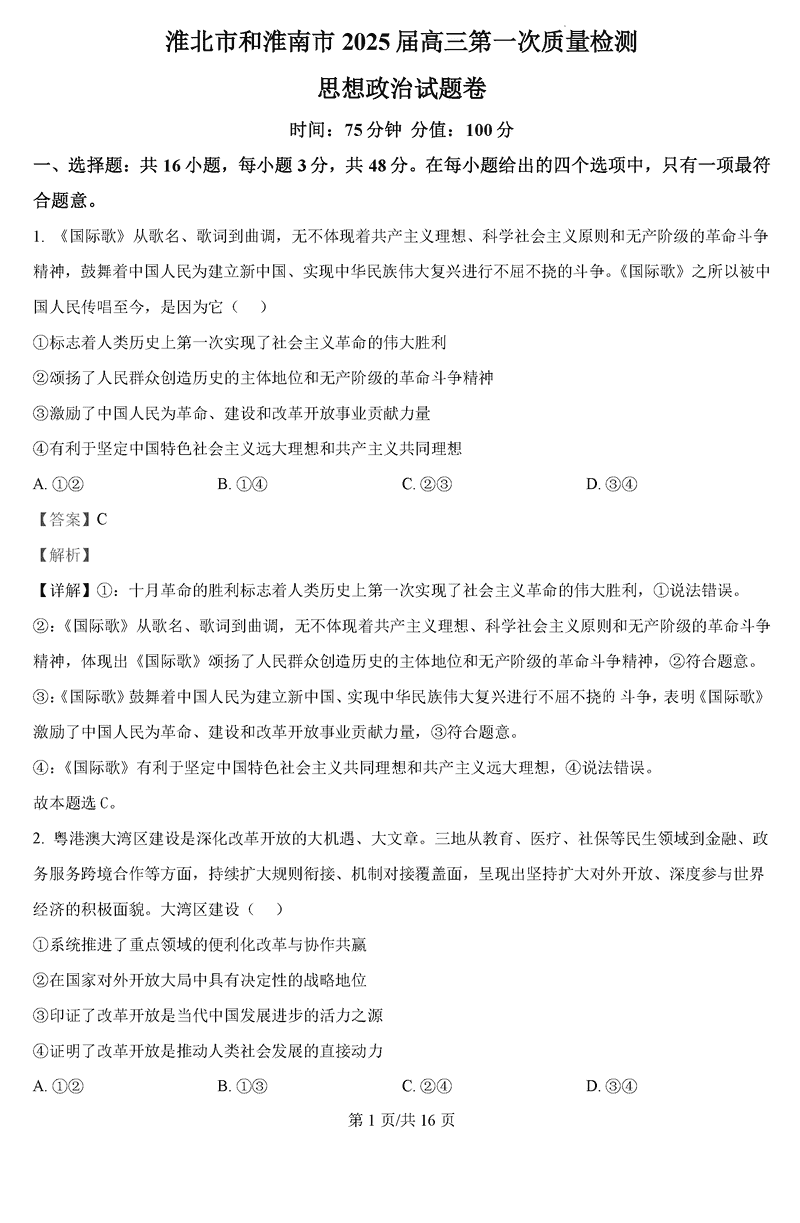 淮南市、淮北市2025届高三上学期第一次质检政治考试已于近日开考,为方便考生考后及时查看考试情况,查漏补缺、弥补不足,本文整理了试题答案解析相关信息!