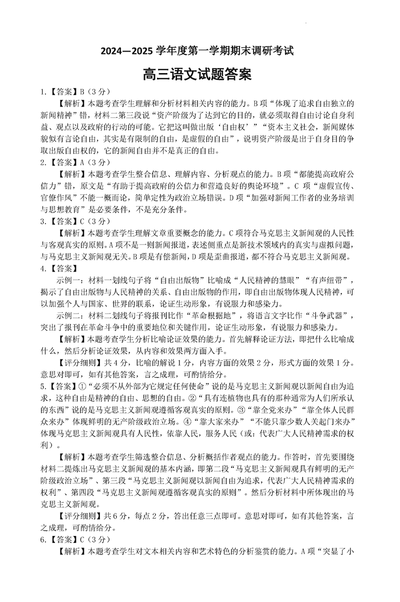 河北保定2024-2025学年高三上学期1月期末调研语文考试已于近日开考,为方便考生考后及时查看考试情况,查漏补缺、弥补不足,本文整理了试题答案解析相关信息!