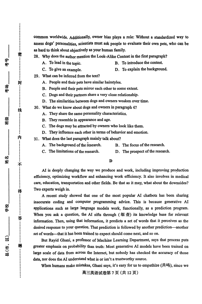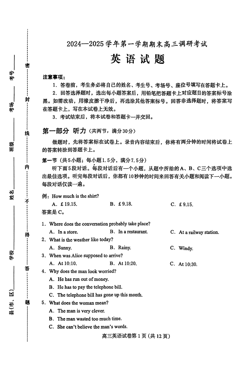 河北保定2024-2025学年高三上学期1月期末调研英语考试已于近日开考,为方便考生考后及时查看考试情况,查漏补缺、弥补不足,本文整理了试题答案解析相关信息!