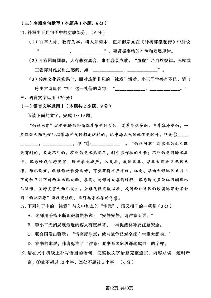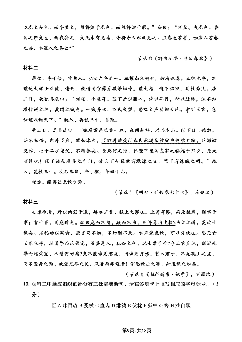 重庆主城五区一诊暨九龙坡高2025届学业质量调研语文试题及答案