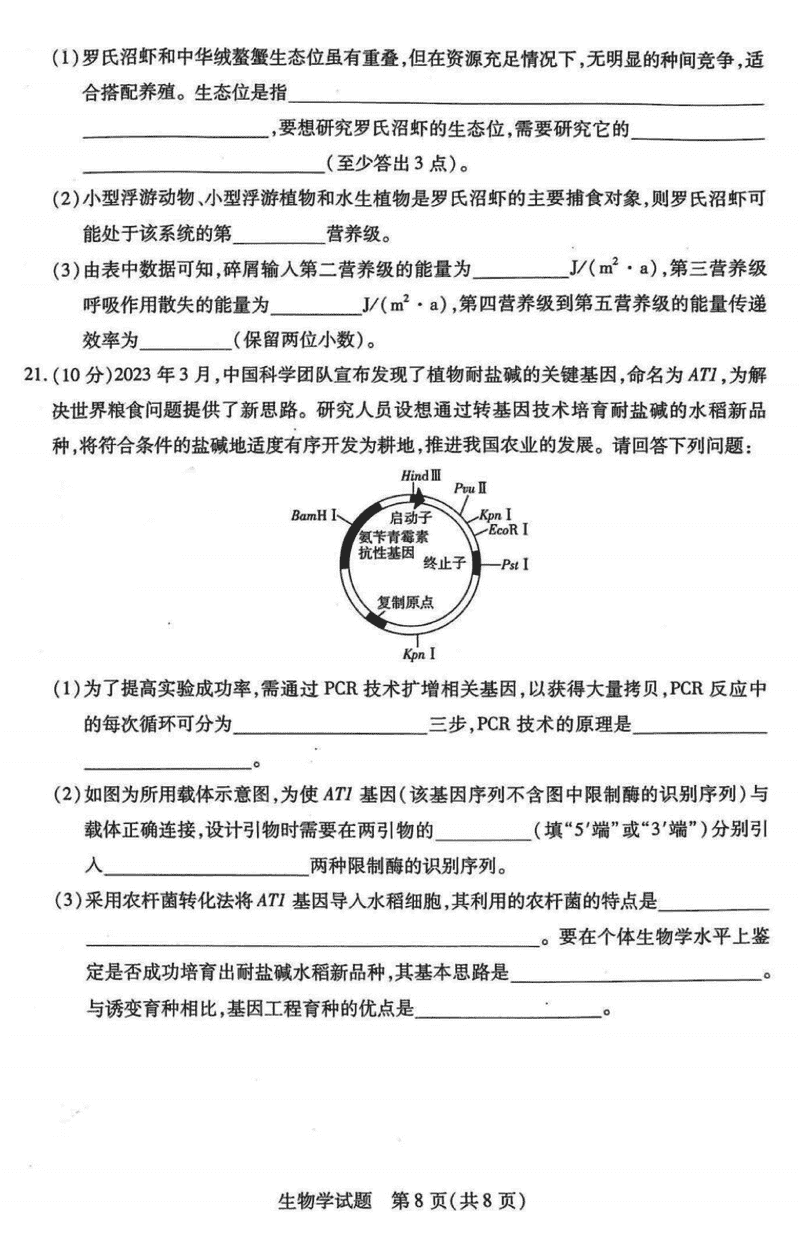 皖豫天一大联考2025届高三1月期末检测生物考试已于近日开考,为方便考生考后及时查看考试情况,查漏补缺、弥补不足,本文整理了试题答案解析相关信息!