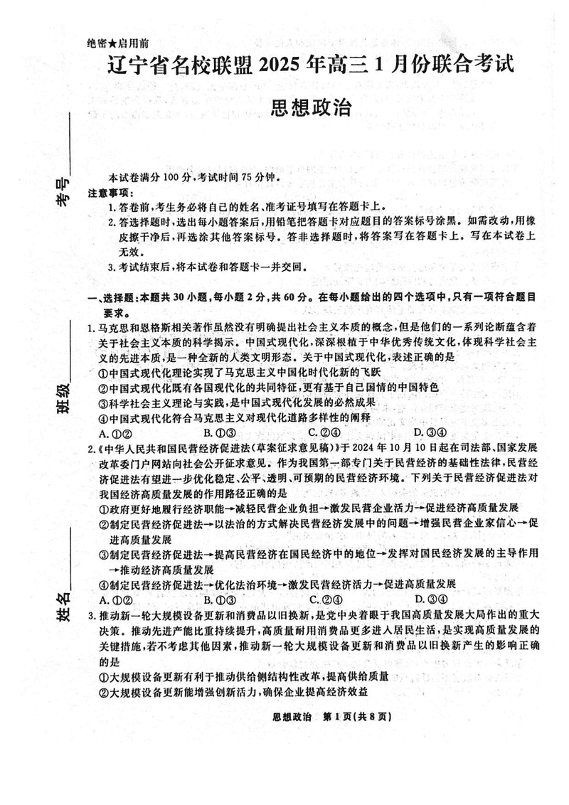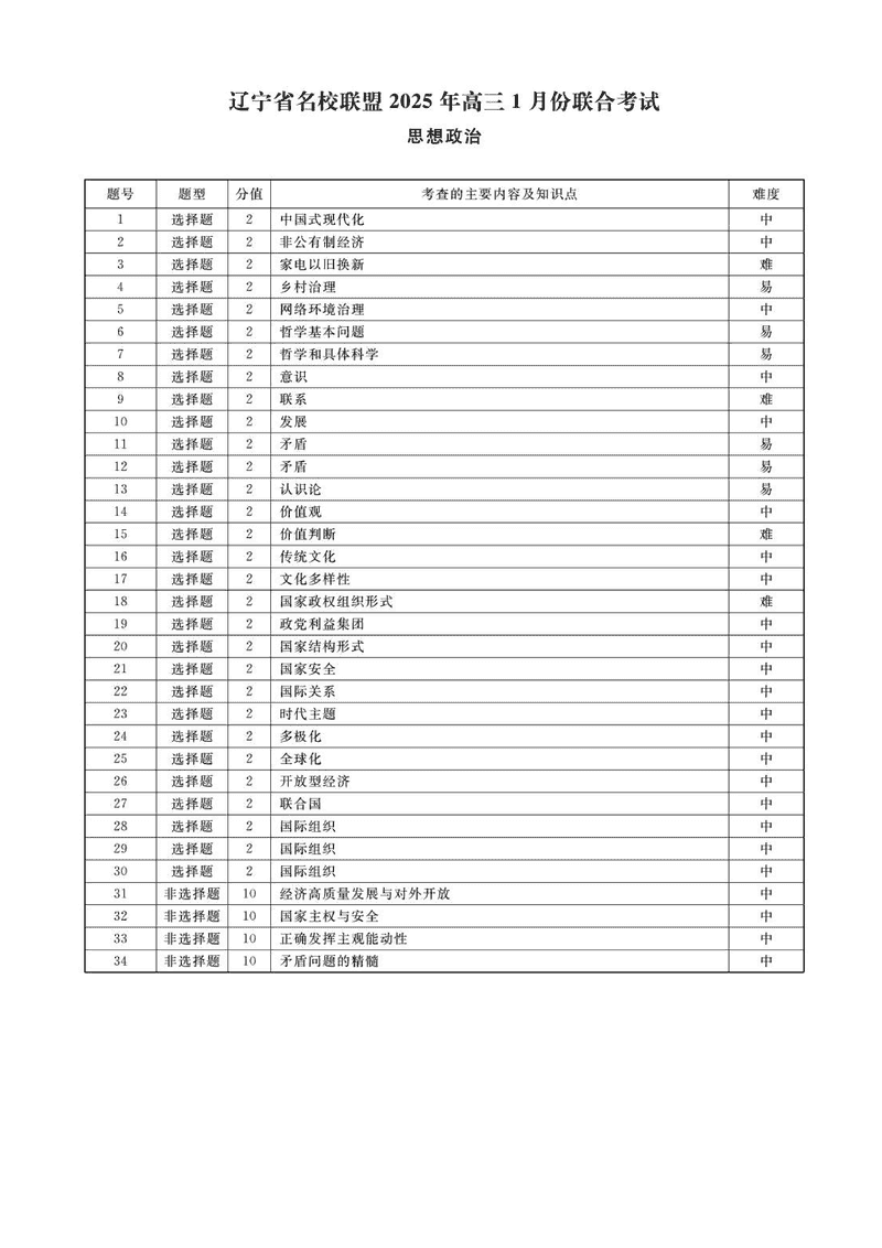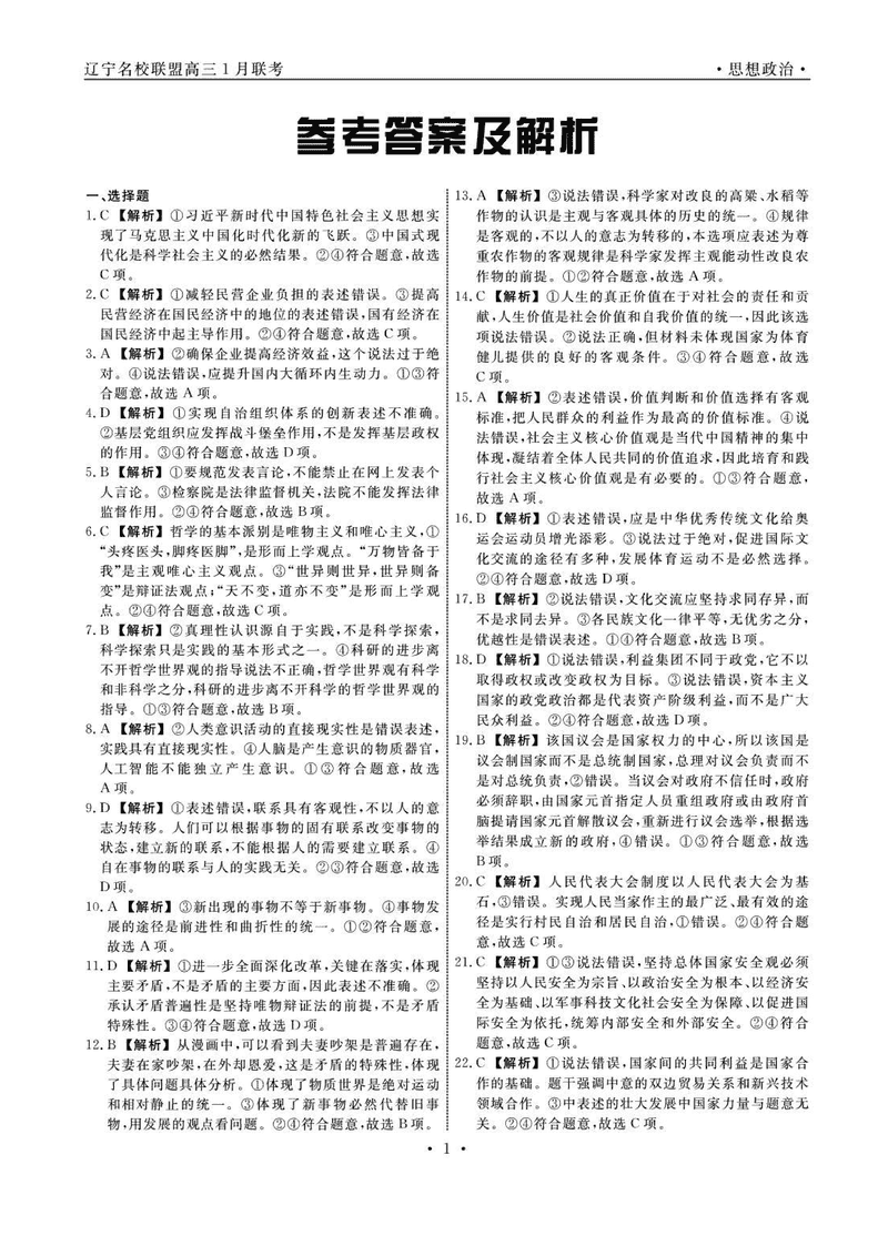 辽宁名校联盟2025年高三上学期1月联考政治考试已于近日开考,为方便考生考后及时查看考试情况,查漏补缺、弥补不足,本文整理了试题答案解析相关信息!