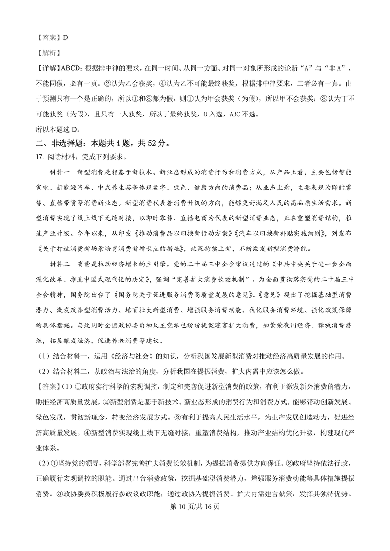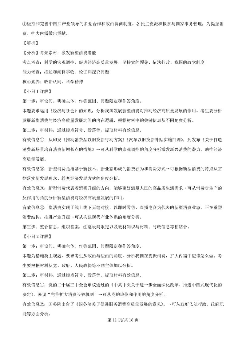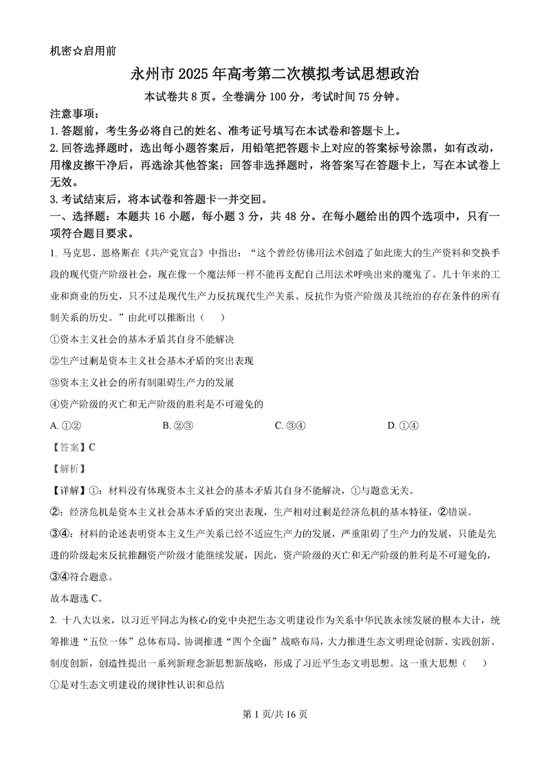 湖南永州2025年高考第二次模考政治试题及答案
