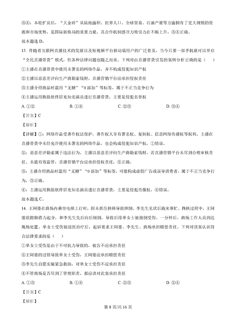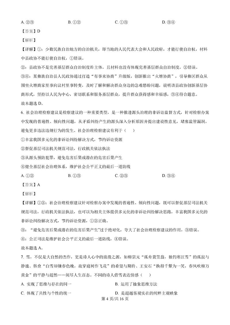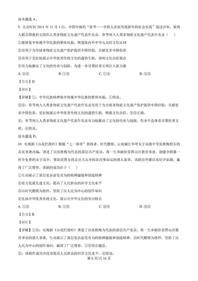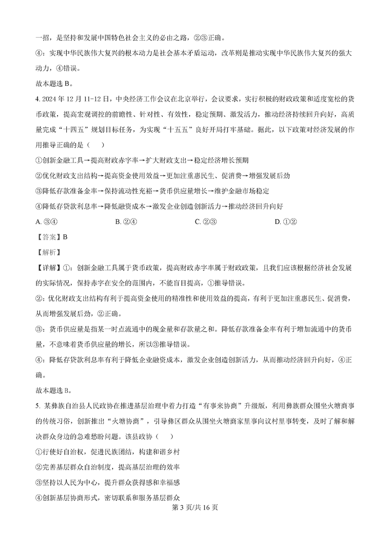 湖南永州2025年高考第二次模考政治试题及答案