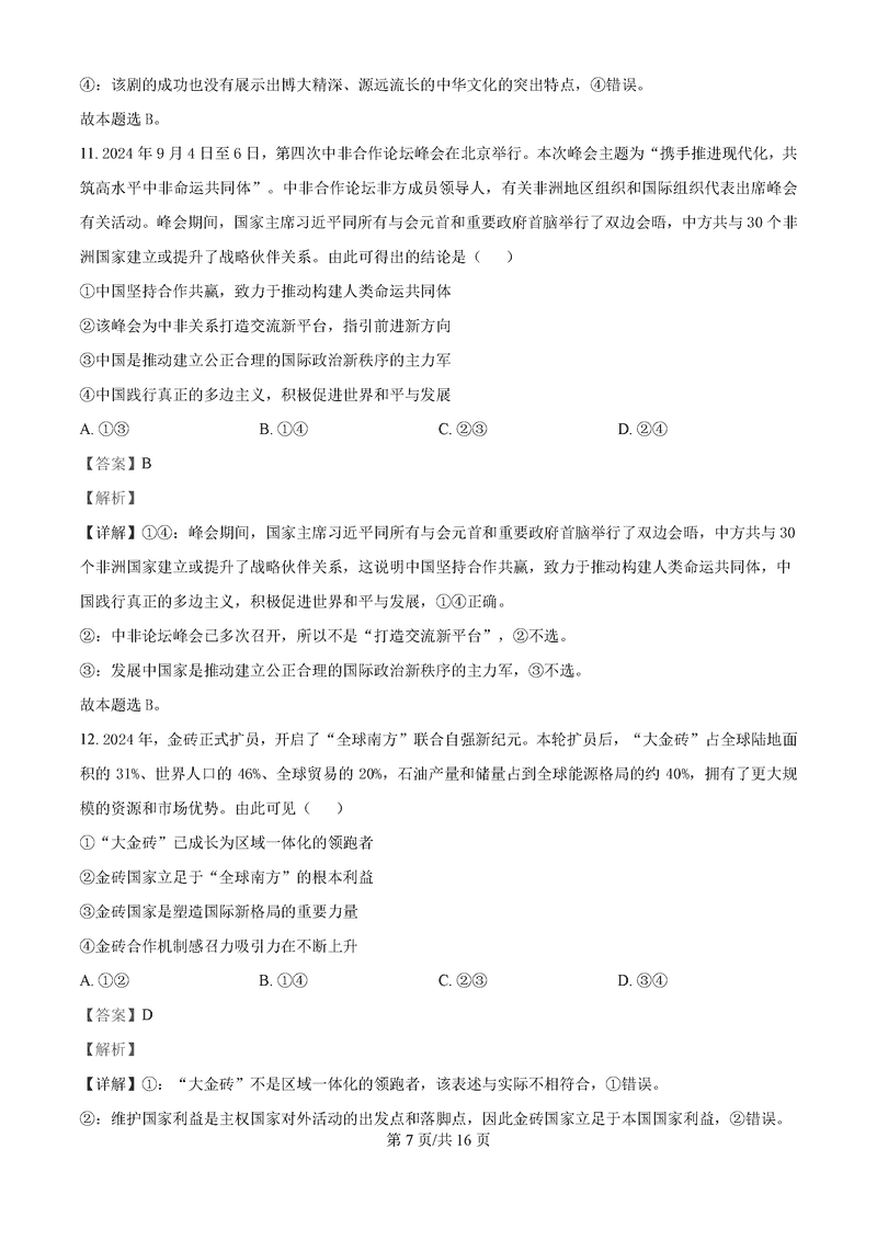 湖南 文综试题