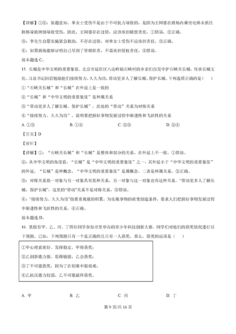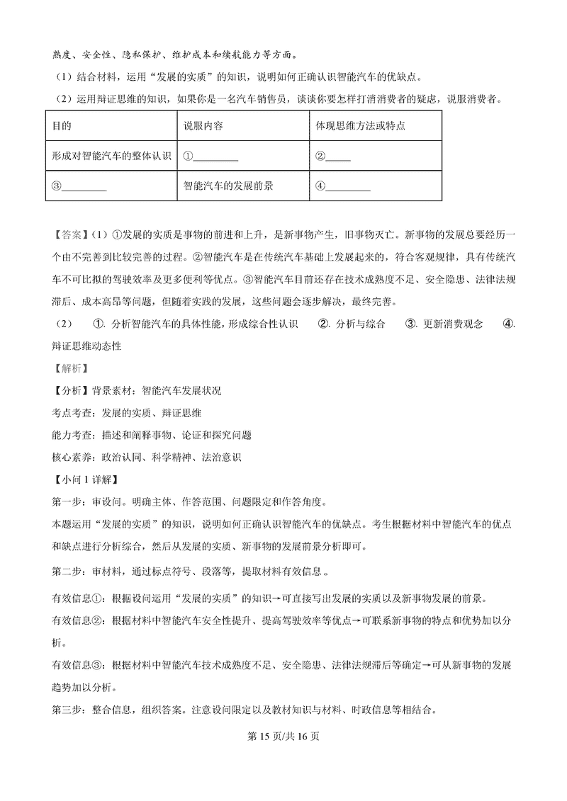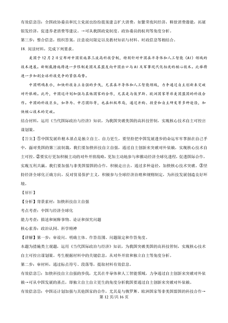 政治试题及答案解析