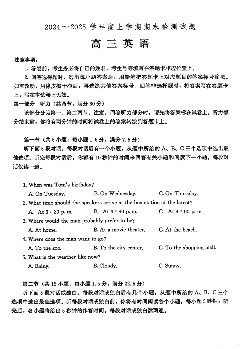 潍坊市、临沂市2025届高三上学期期末英语试题及答案