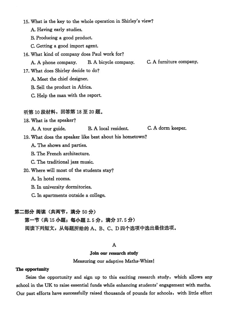 山东 英语试题