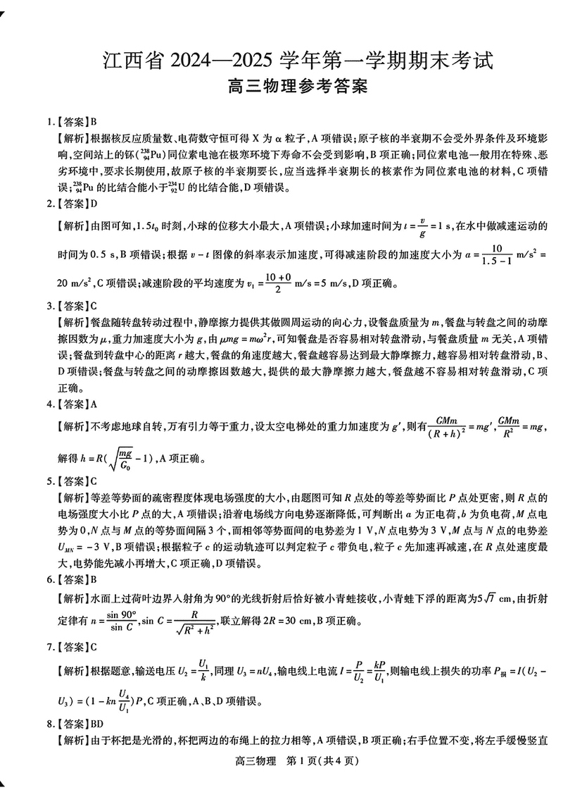 江西智慧上进教育稳派联考2025届高三上1月期末物理试题及答案