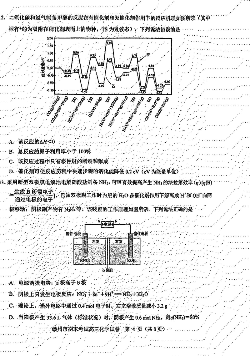 江西赣州2025年1月高三上学期期末化学试题及答案