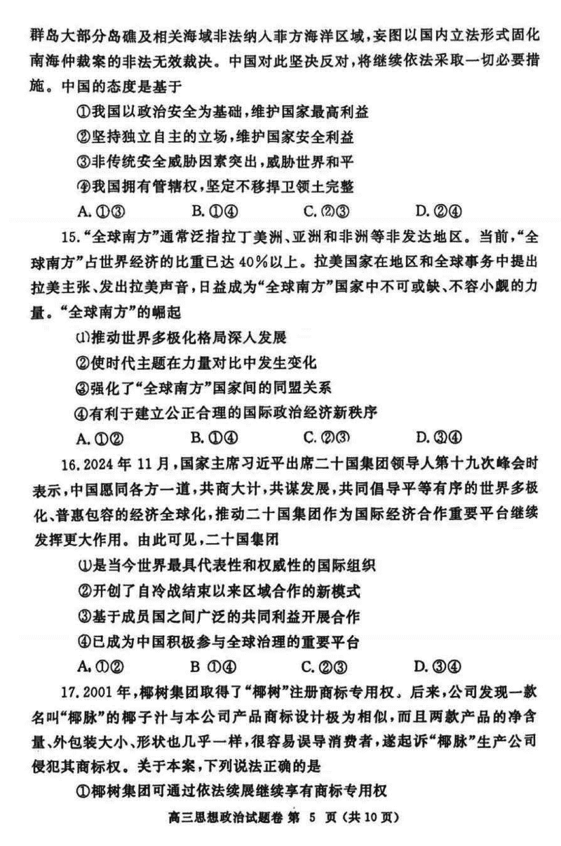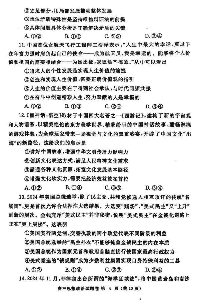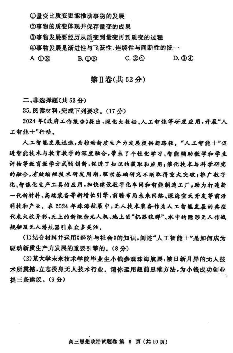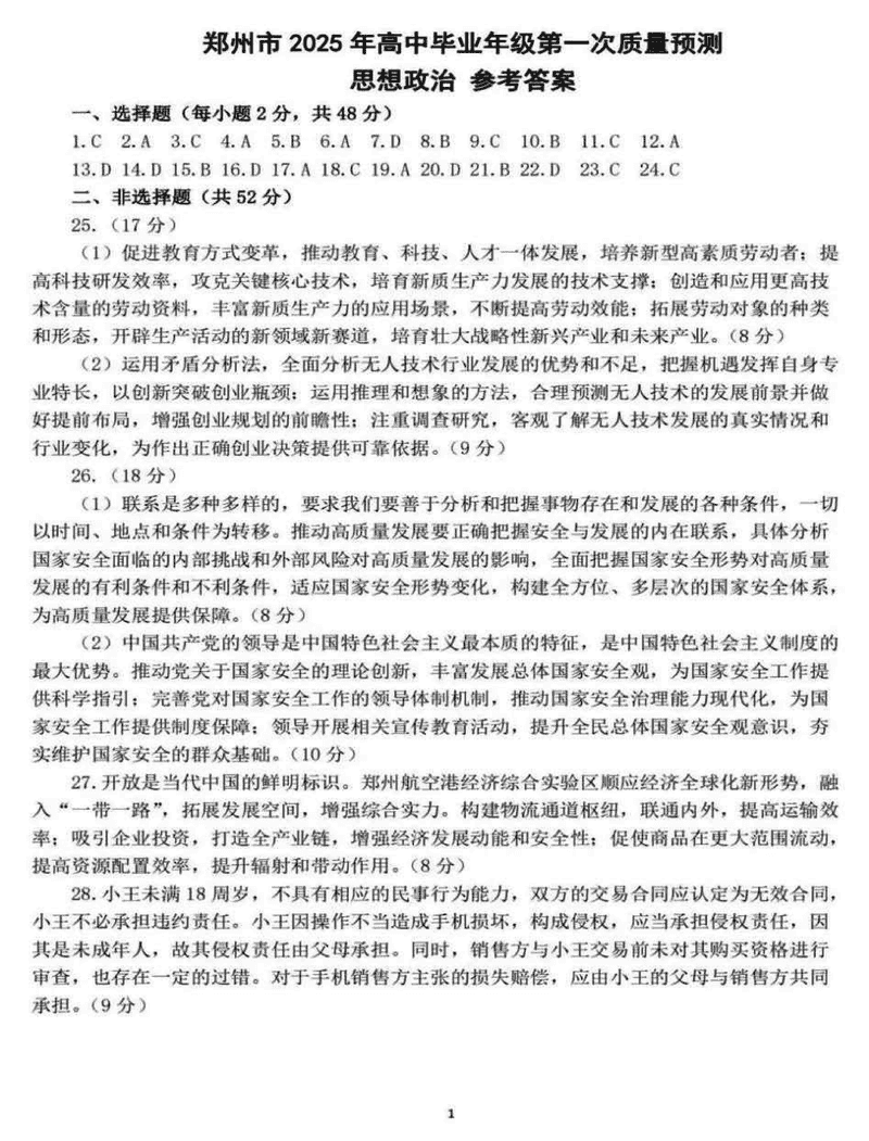 河南郑州2025届高三第一次质量预测政治试题及答案 时间:2025-01-20 河南 文综试题 河南郑州2025届高三第一次质量预测政治考试已于近日开考,为方便考生考后及时查看考试情况,查漏补缺、弥补不足,本文整理了试题答案解析相关信息! 汇总:河南郑州2025届高三第一次质量预测试题及答案汇总 政治试题及答案解析