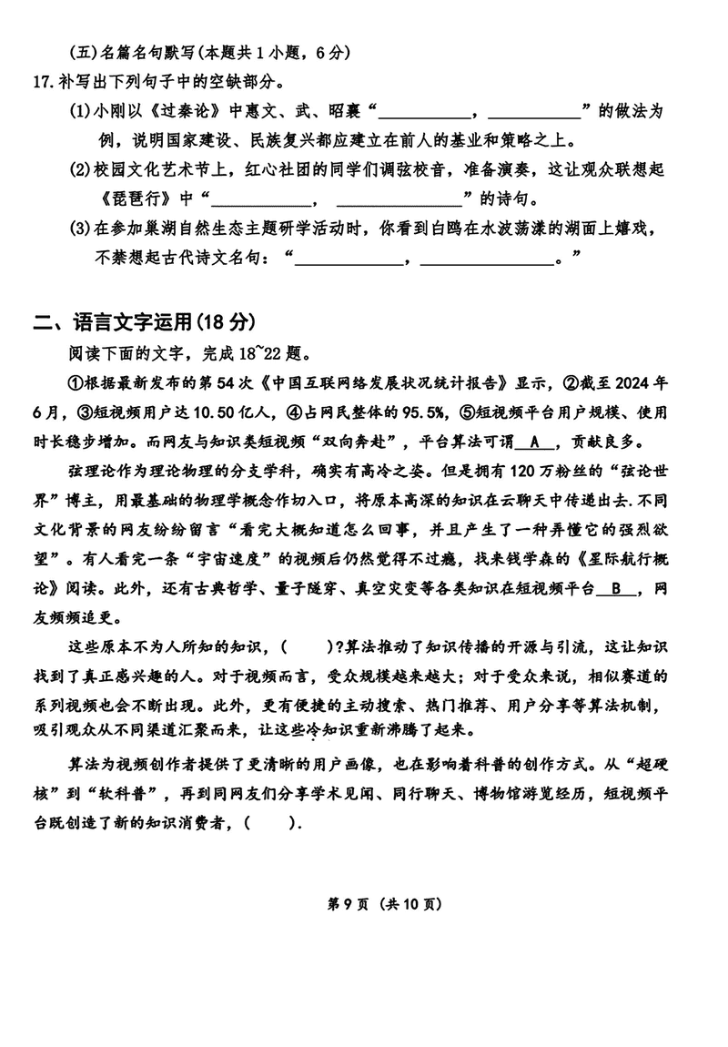 安徽合肥2025届高三第一次教学质检语文考试已于近日开考,为方便考生考后及时查看考试情况,查漏补缺、弥补不足,本文整理了试题答案解析相关信息!
