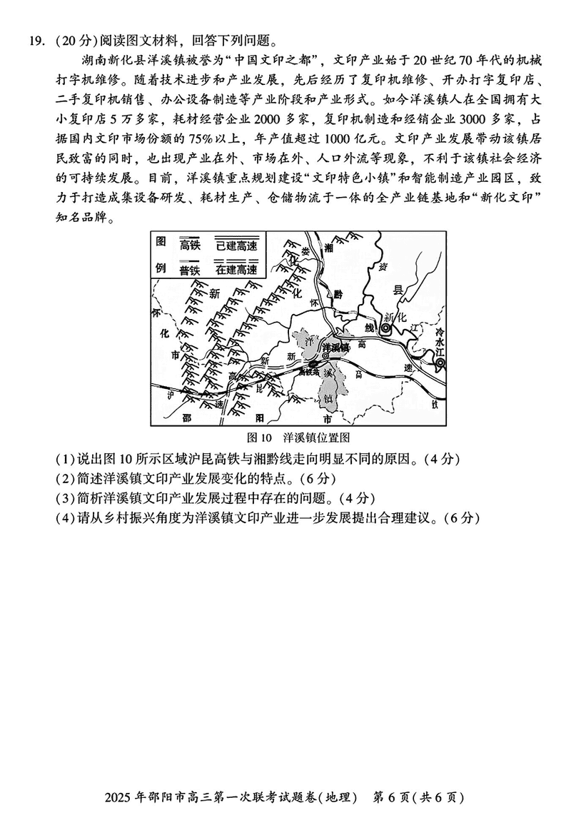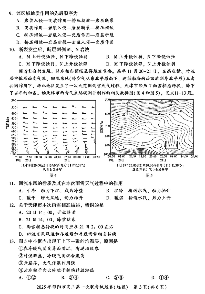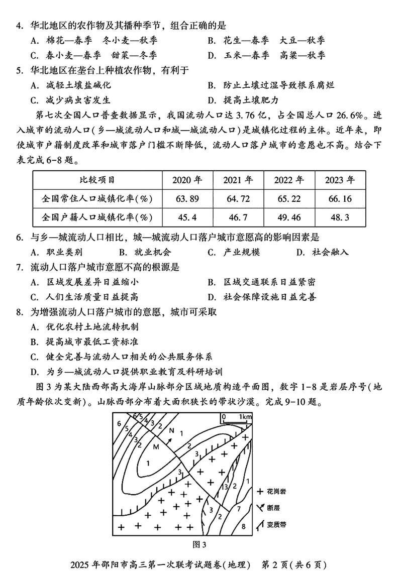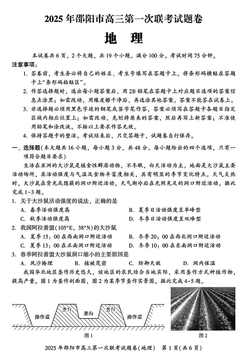 湖南邵阳2025年高三上学期期末地理试题及答案