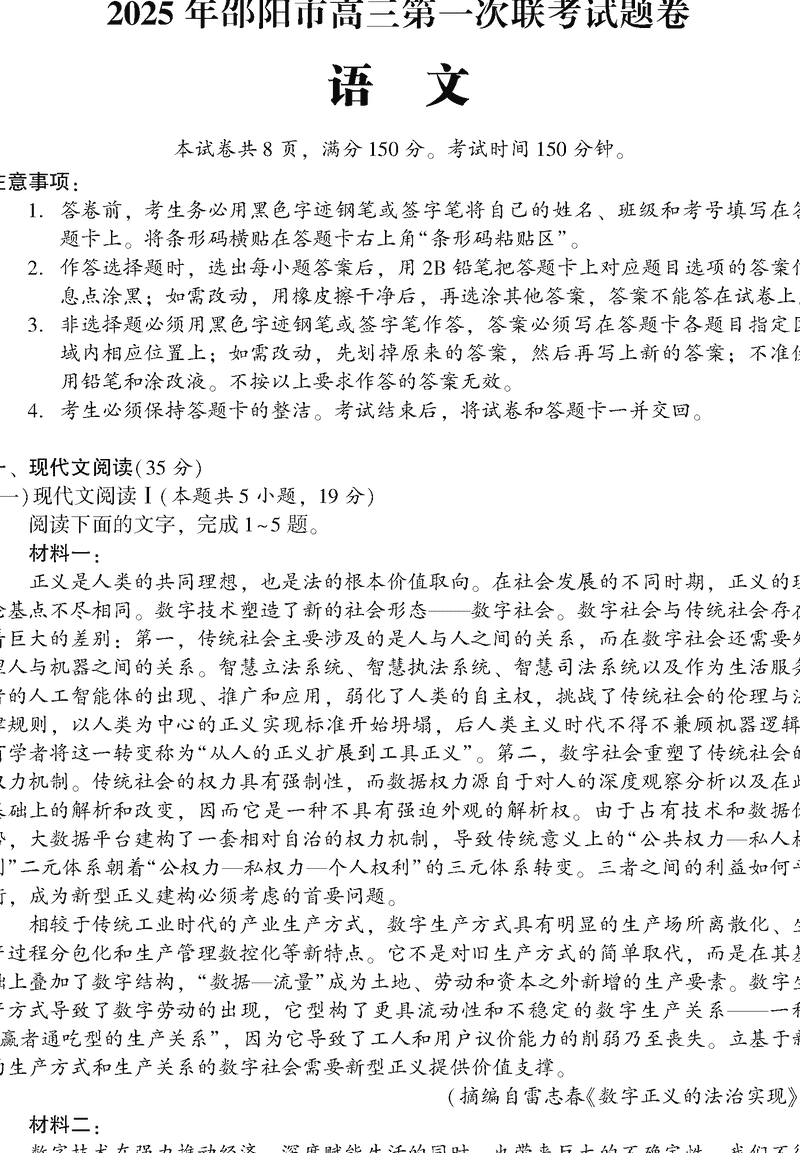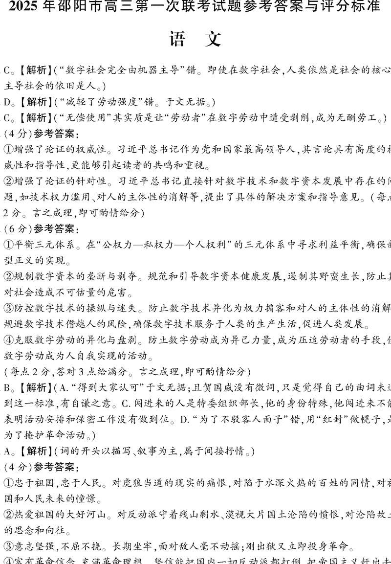湖南邵阳2025年高三上学期期末语文考试已于近日开考,为方便考生考后及时查看考试情况,查漏补缺、弥补不足,本文整理了试题答案解析相关信息!