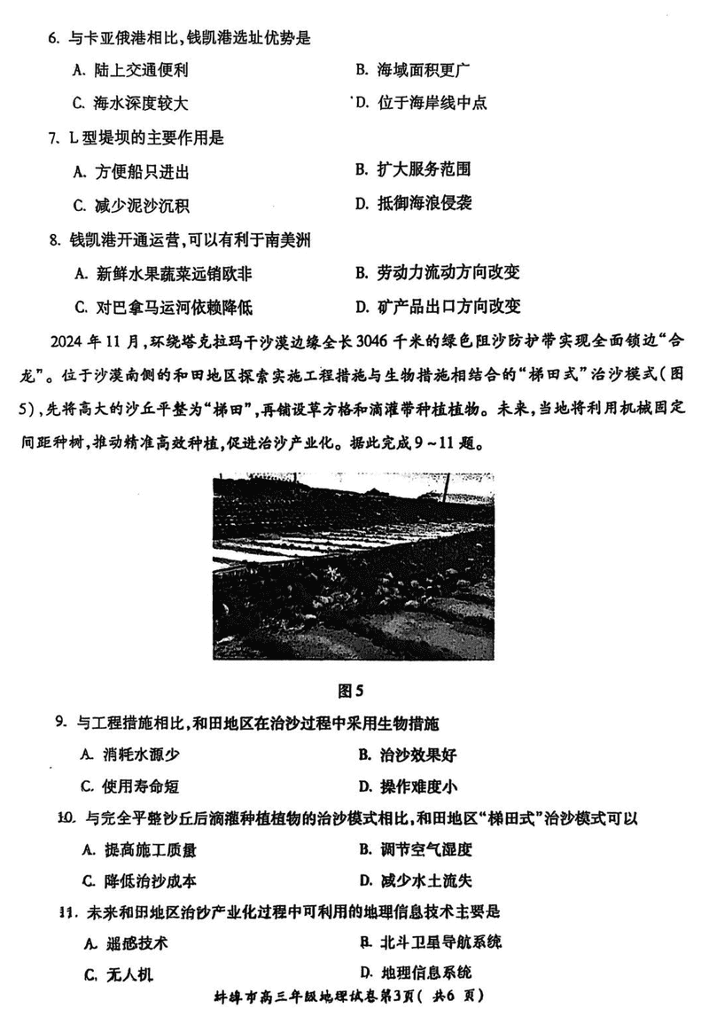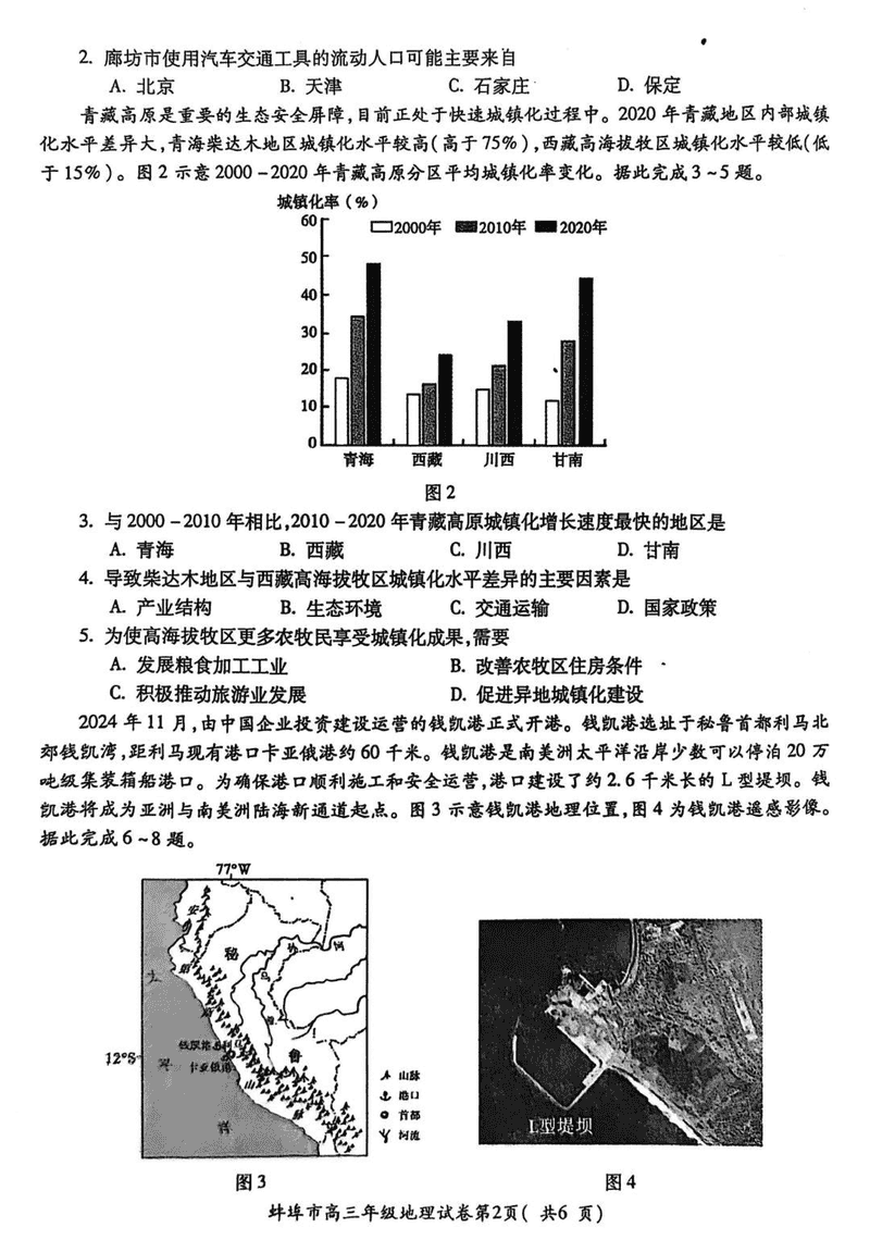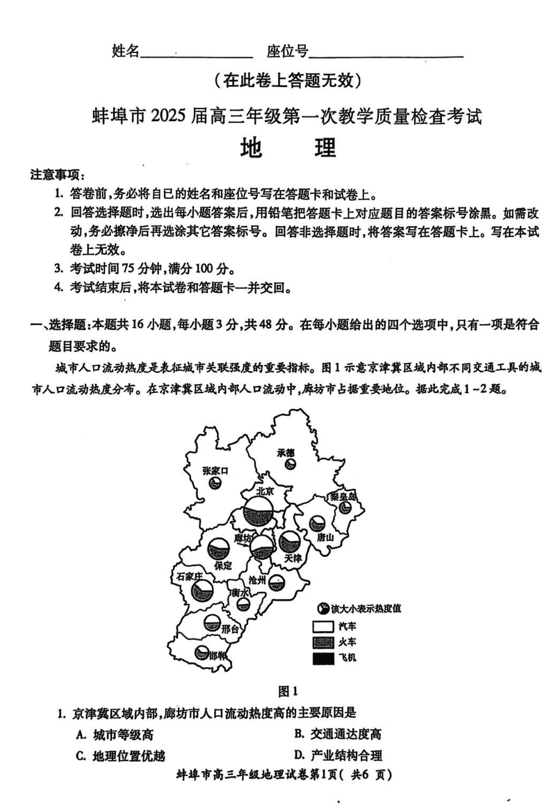 安徽蚌埠2025届高三上学期1月第一次教学质量检查地理试题及答案
