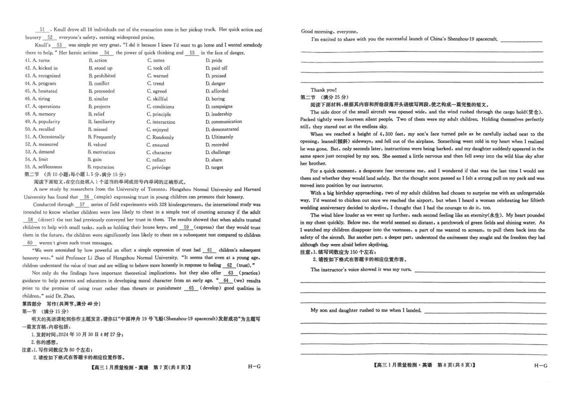 九师联盟2025届高三1月质量检测G英语试题及答案 时间:2025-01-24 英语试题 九师联盟2025届高三1月质量检测G英语考试已于近日开考,为方便考生考后及时查看考试情况,查漏补缺、弥补不足,本文整理了试题答案解析相关信息! 汇总:九师联盟2025届高三1月质量检测G试题及答案汇总 英语试题及答案解析