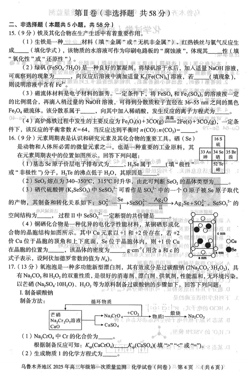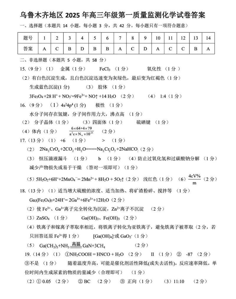 新疆乌鲁木齐2025年高三第一次质量监测化学考试已于近日开考,为方便考生考后及时查看考试情况,查漏补缺、弥补不足,本文整理了试题答案解析相关信息!