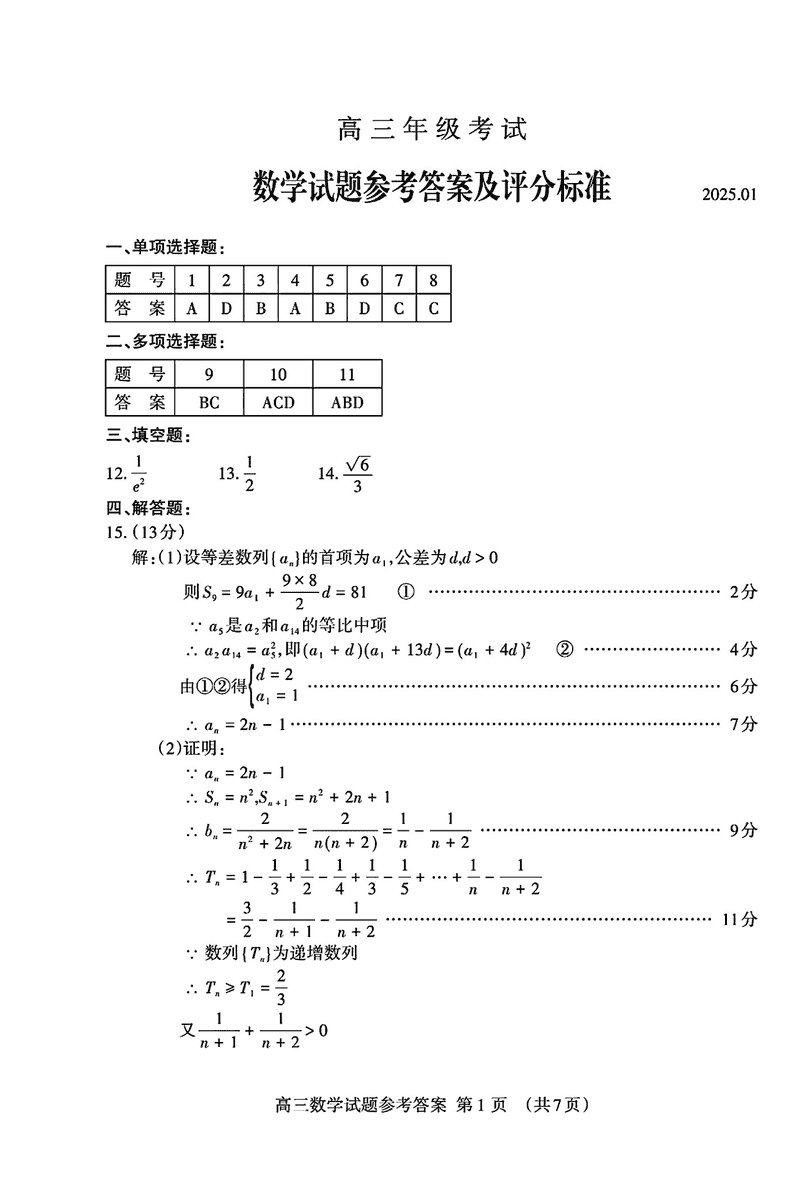 山东泰安2024-2025学年高三上学期1月期末数学考试已于近日开考,为方便考生考后及时查看考试情况,查漏补缺、弥补不足,本文整理了试题答案解析相关信息!