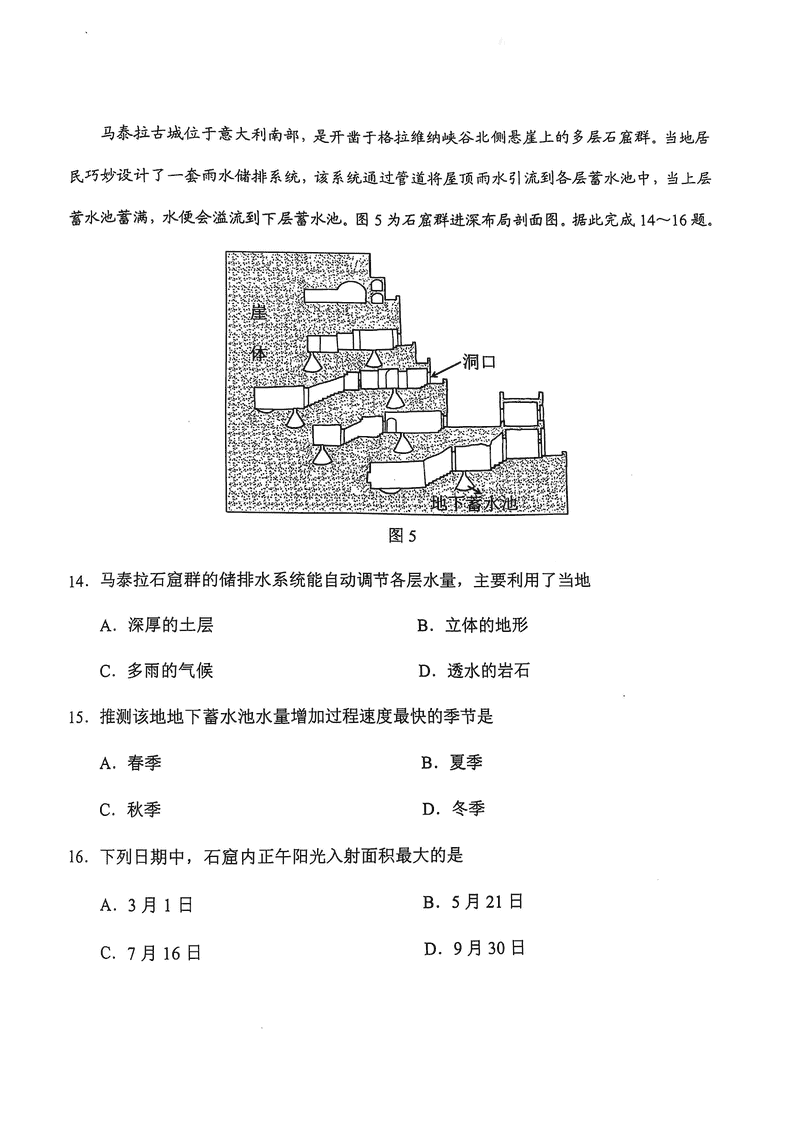 昆明三诊一模2025届高三摸底诊断地理试题及答案
