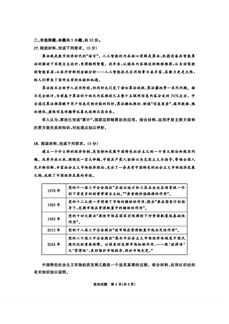 四川成都2025年高二上期期末统一调研政治试题及答案