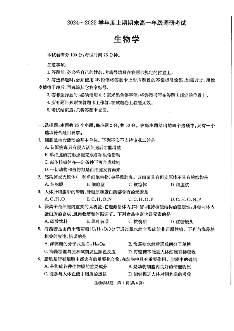 四川成都2025年高一上期期末统一调研生物试题及答案 时间:2025-01-27 四川 高中生物 四川省成都市2025年高一上期期末统一调研生物考试已于近日开考,为方便考生考后及时查看考试情况,查漏补缺、弥补不足,本文整理了试题答案解析相关信息! 生物试题及答案解析
