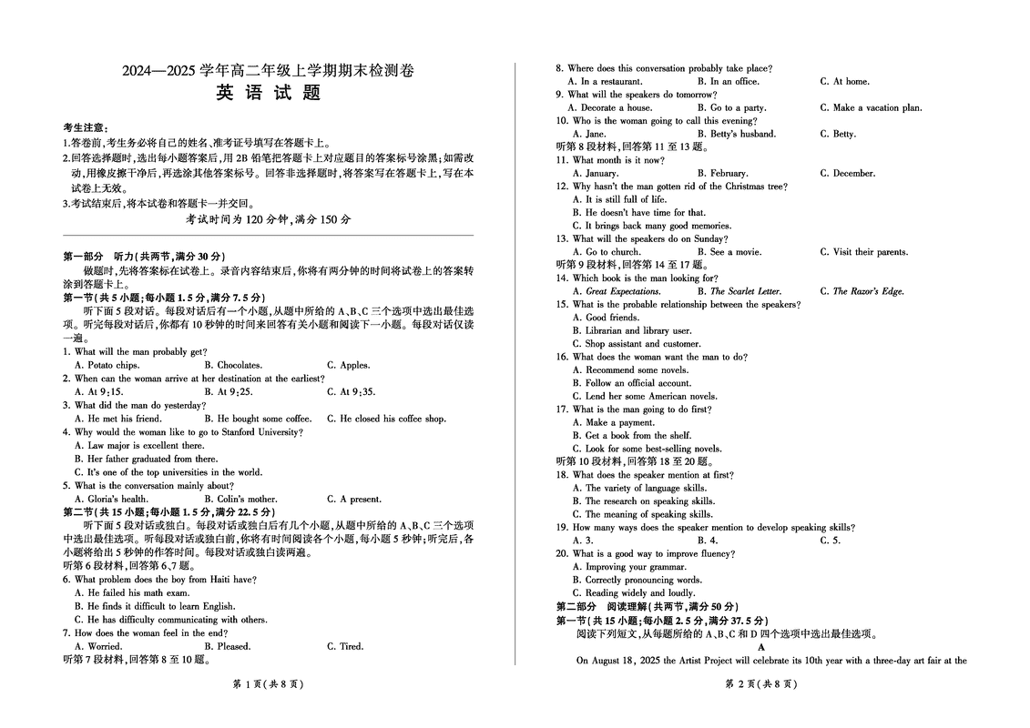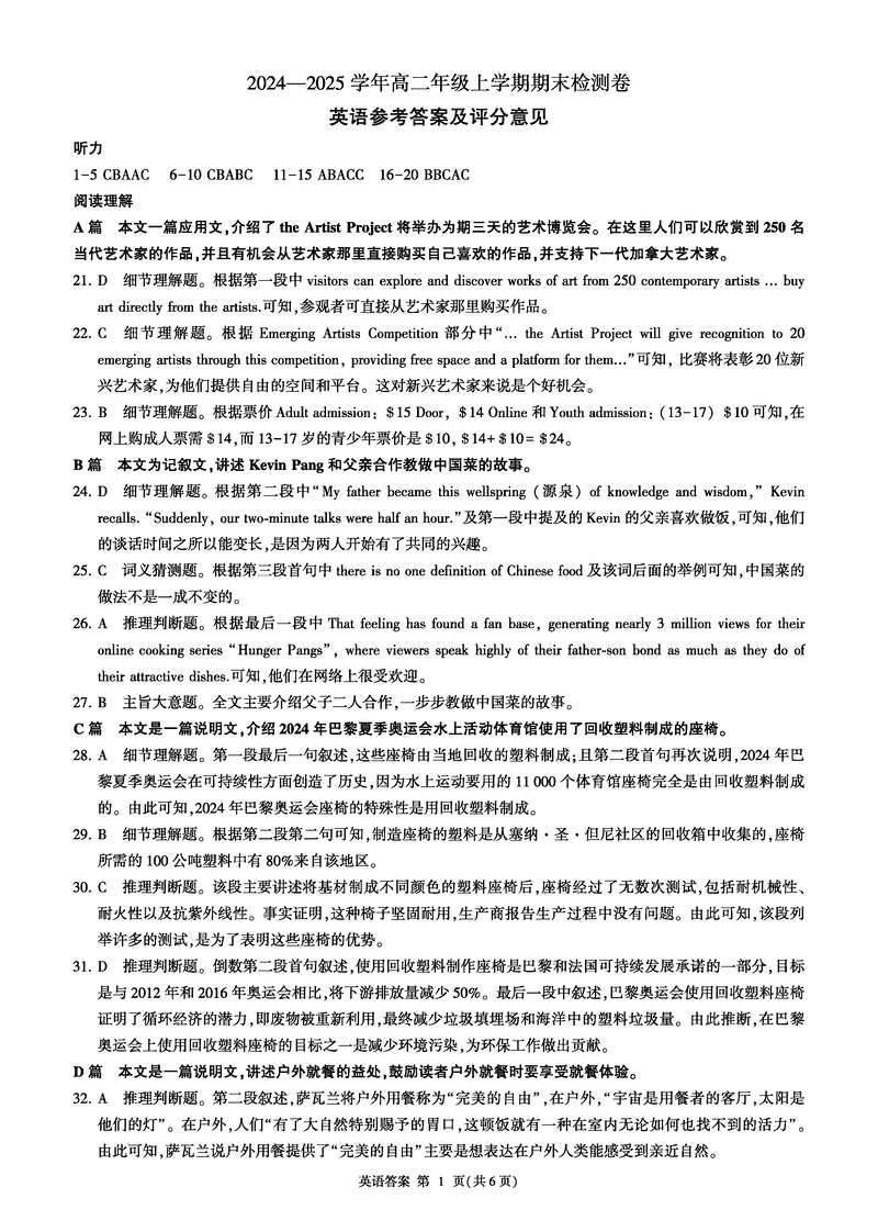 湖南百师联盟2024-2025学年高二上学期1月期末联考英语试题及答案 时间:2025-01-27 湖南 高中英语 湖南省百师联盟2024-2025学年高二上学期1月期末联考英语考试已于近日开考,为方便考生考后及时查看考试情况,查漏补缺、弥补不足,本文整理了试题答案解析相关信息! 英语试题及答案解析