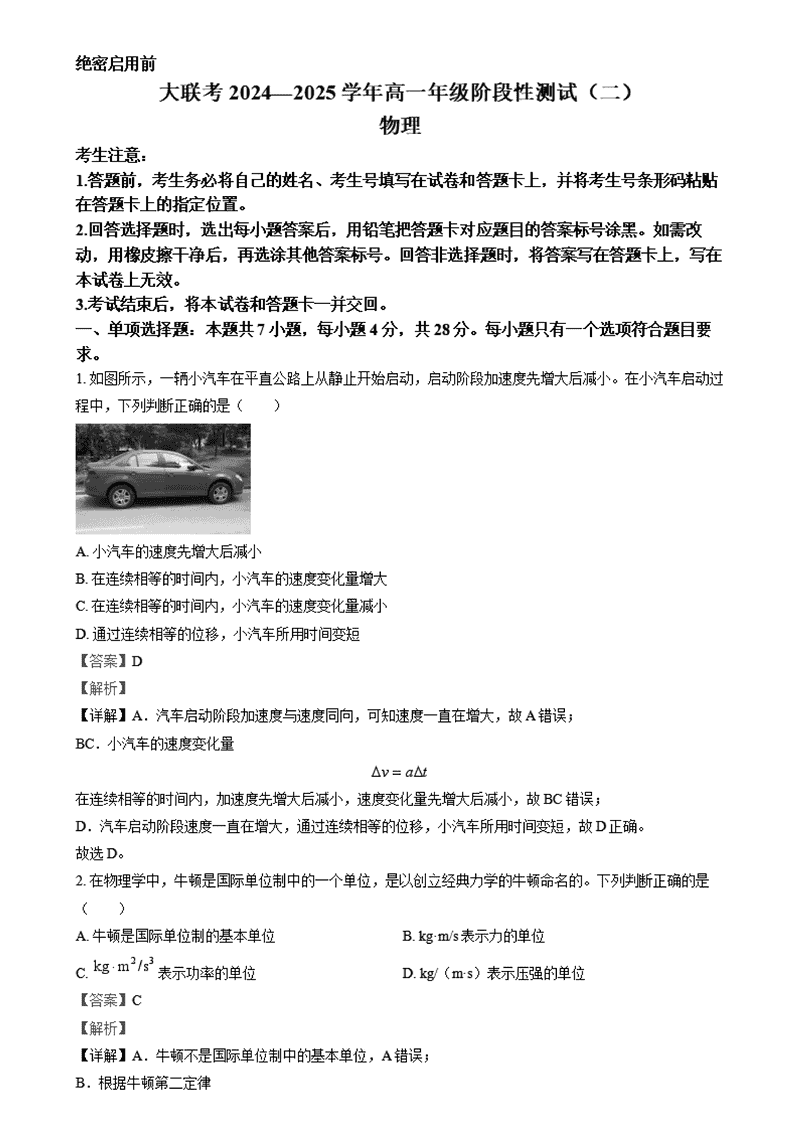 河南名校大联考2024-2025学年高一上学期12月月考物理试题及答案 时间:2025-01-27 河南 高中物理 河南名校大联考2024-2025学年高一上学期12月月考物理考试已于近日开考,为方便考生考后及时查看考试情况,查漏补缺、弥补不足,本文整理了试题答案解析相关信息! 物理试题及答案解析