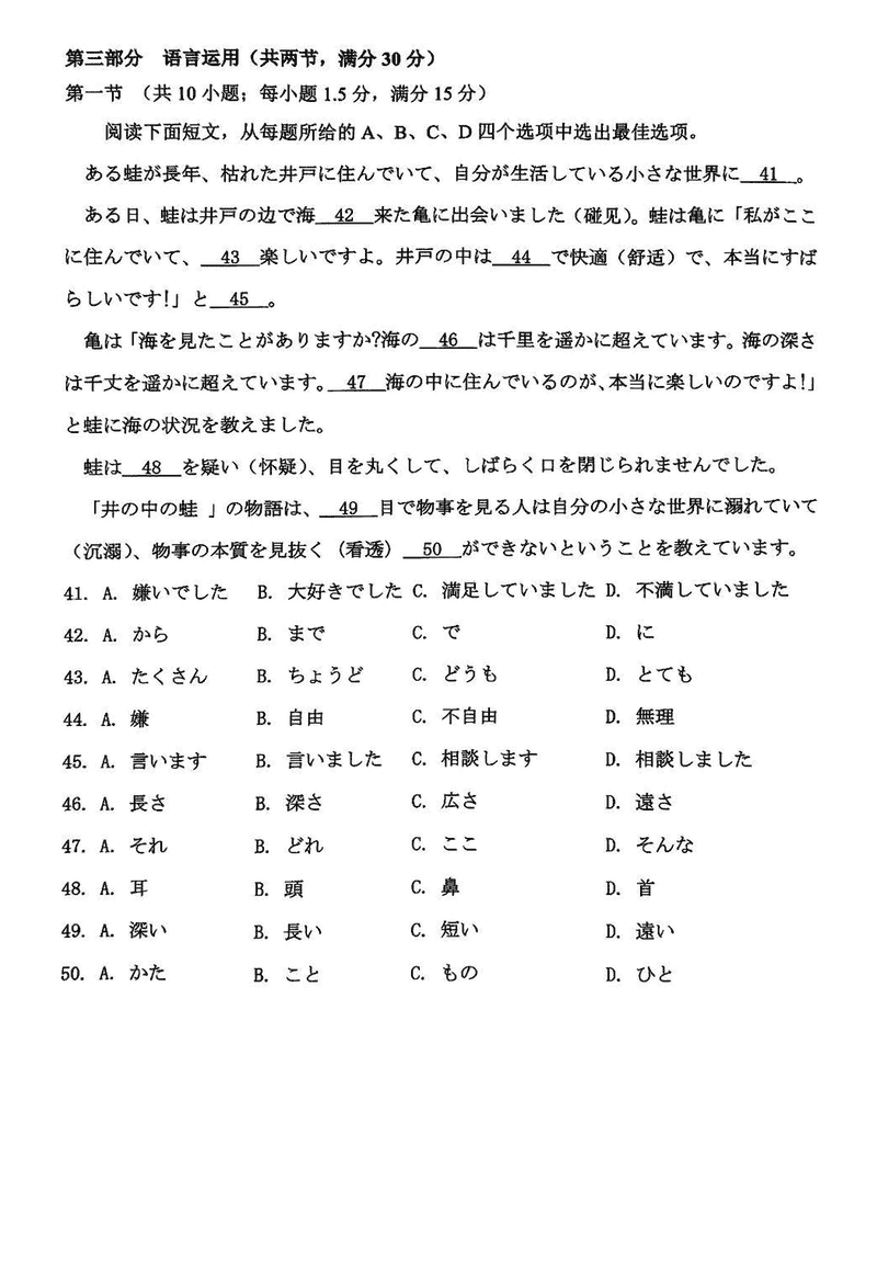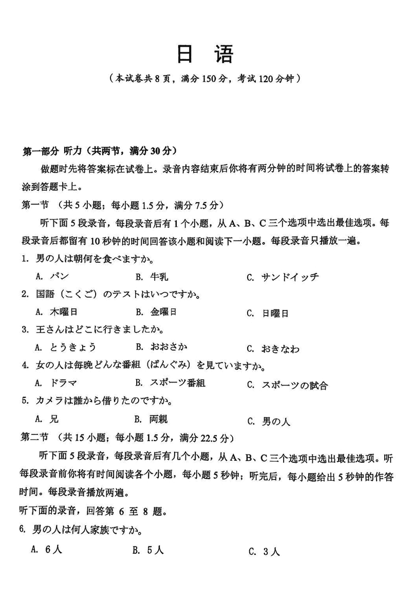 湖南永州2024-2025学年高一上期末质量监测日语试题及答案 时间:2025-01-27 湖南 高中英语 湖南省永州市2024-2025学年高一上学期期末质量监测日语考试已于近日开考,为方便考生考后及时查看考试情况,查漏补缺、弥补不足,本文整理了试题答案解析相关信息! 日语试题及答案解析