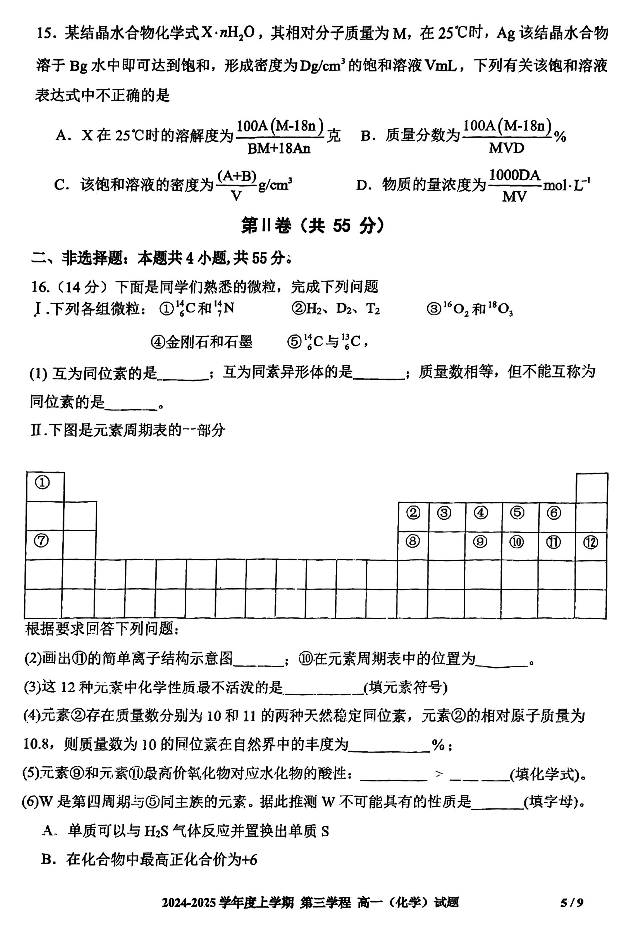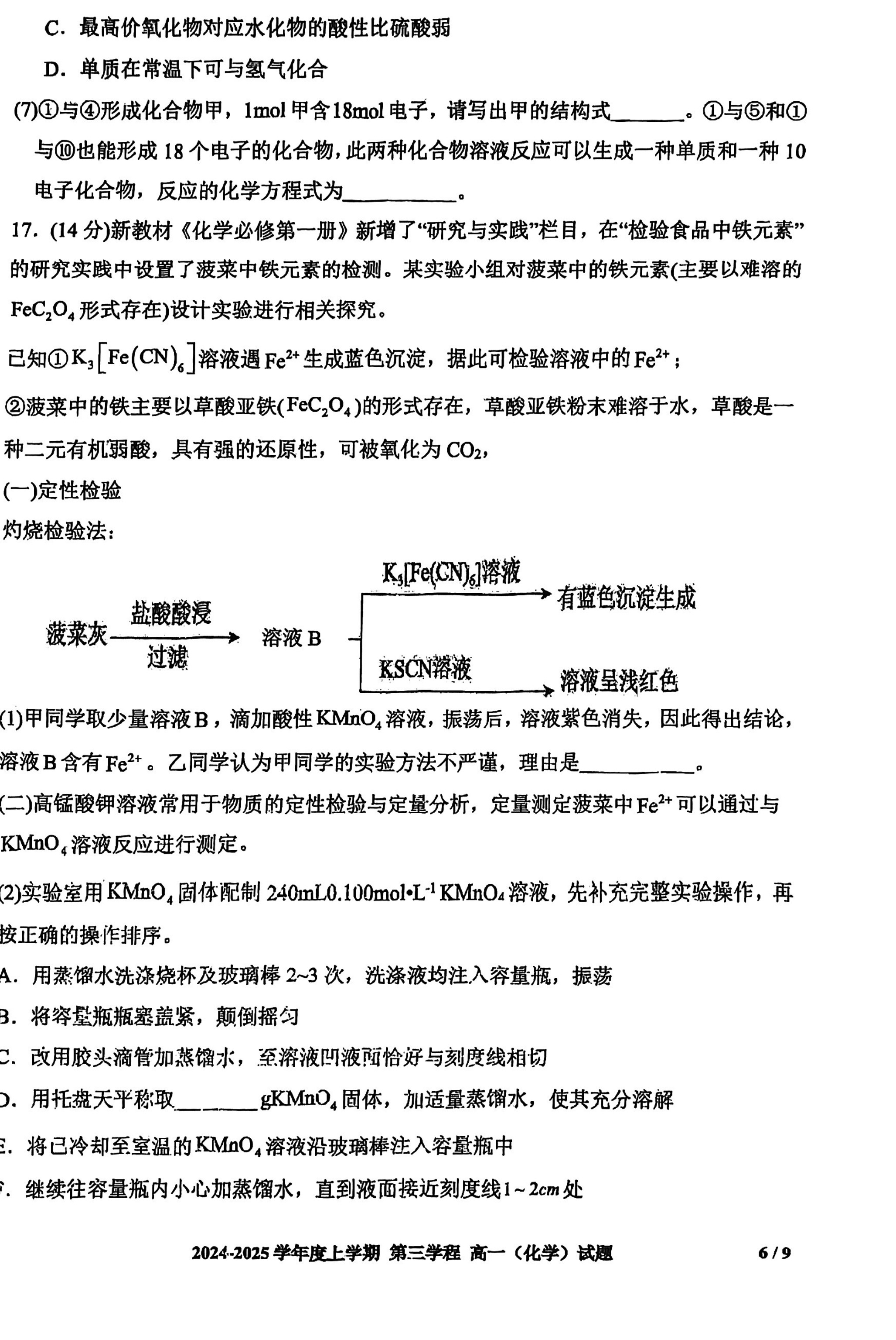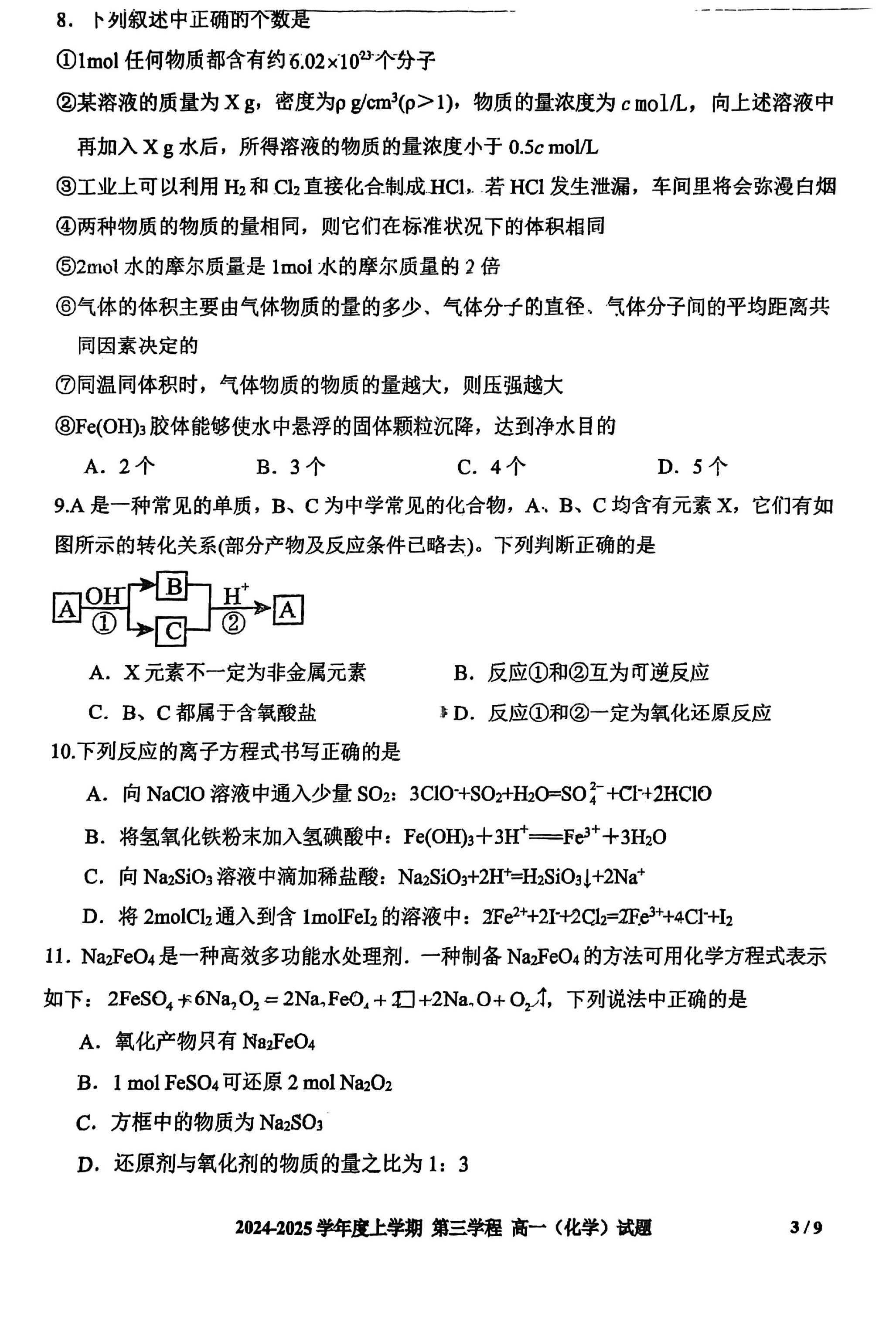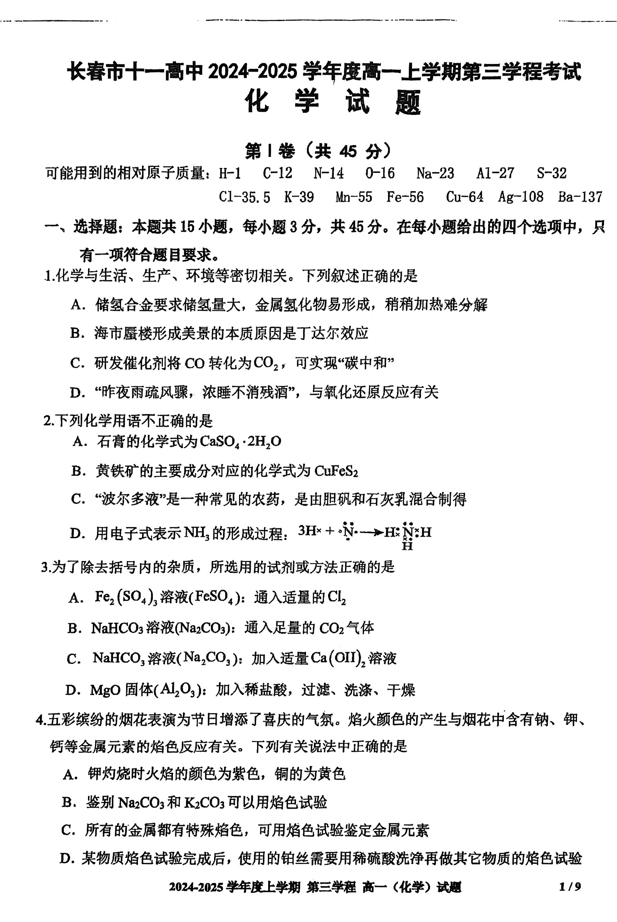 长春十一高中2024-2025学年高一上学期第三学程考化学试题及答案 时间:2025-01-27 吉林 高中化学 长春十一高中2024-2025学年高一上学期第三学程考化学考试已于近日开考,为方便考生考后及时查看考试情况,查漏补缺、弥补不足,本文整理了试题答案解析相关信息! 化学试题及答案解析
