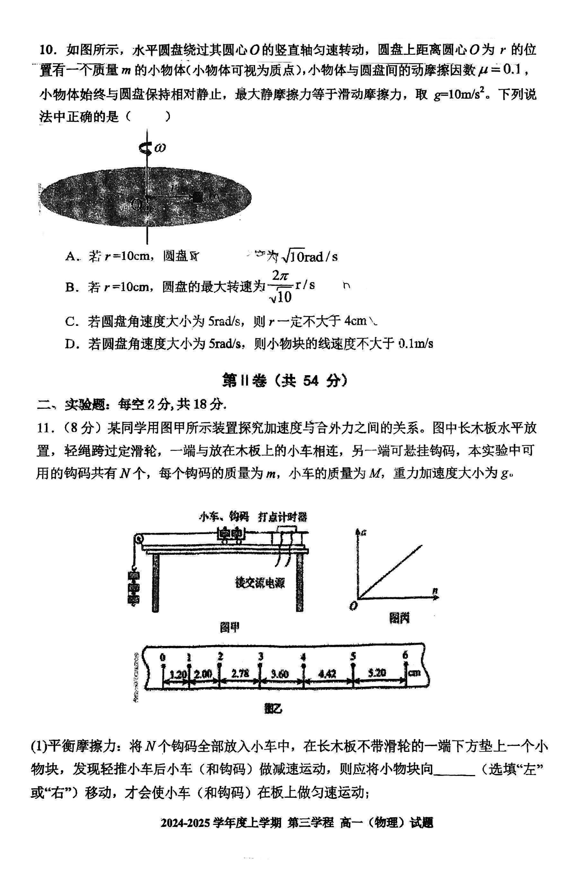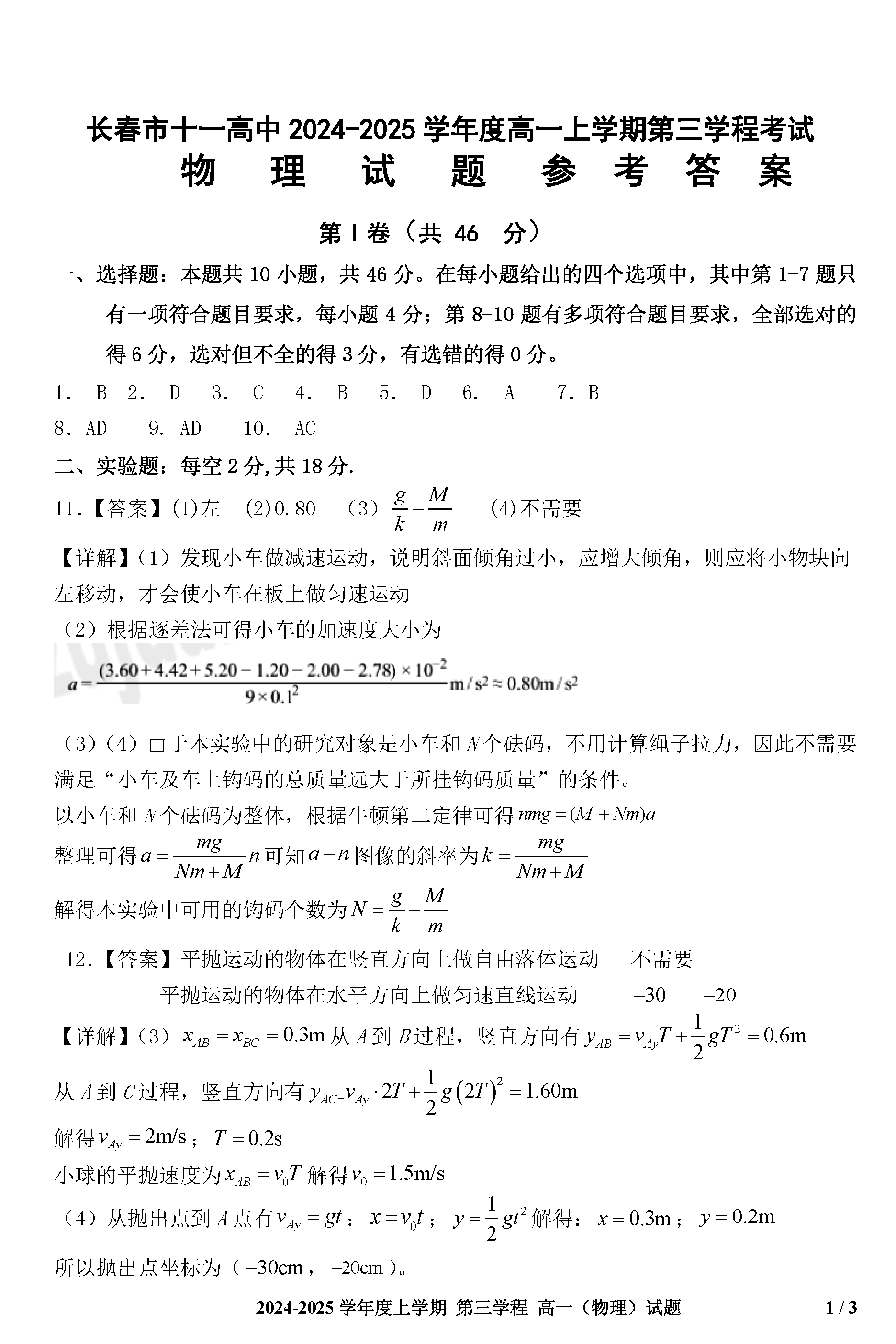 长春十一高中2024-2025学年高一上学期第三学程考物理试题及答案 时间:2025-01-27 吉林 高中物理 长春十一高中2024-2025学年高一上学期第三学程考物理考试已于近日开考,为方便考生考后及时查看考试情况,查漏补缺、弥补不足,本文整理了试题答案解析相关信息! 物理试题及答案解析