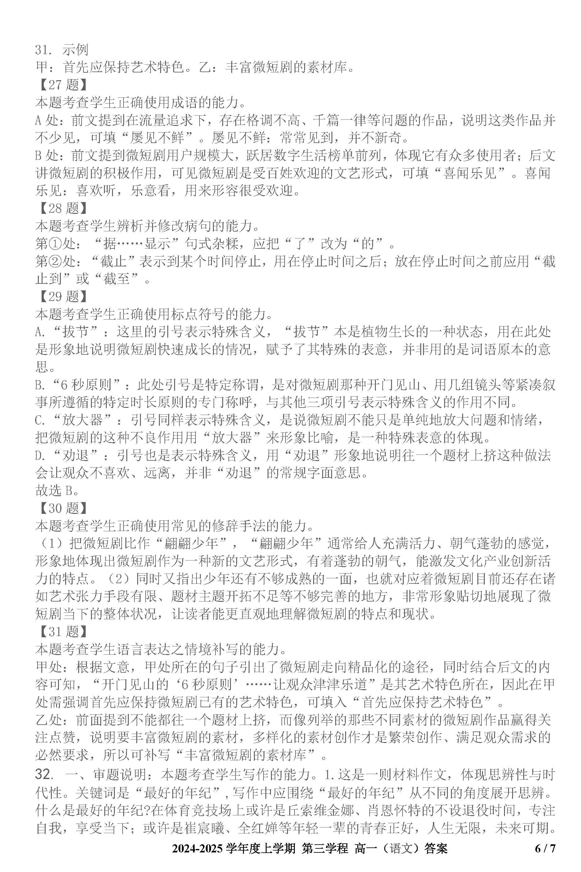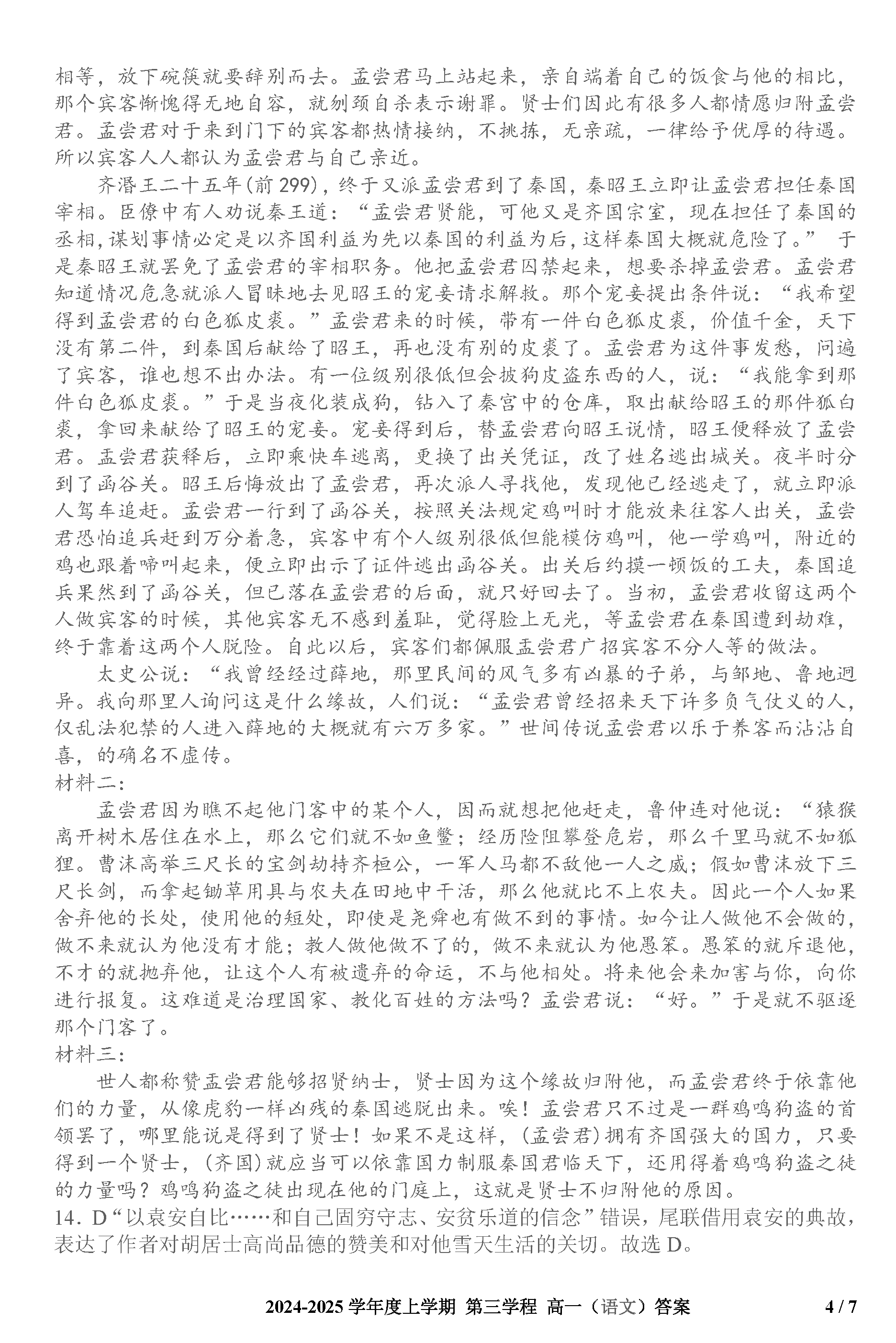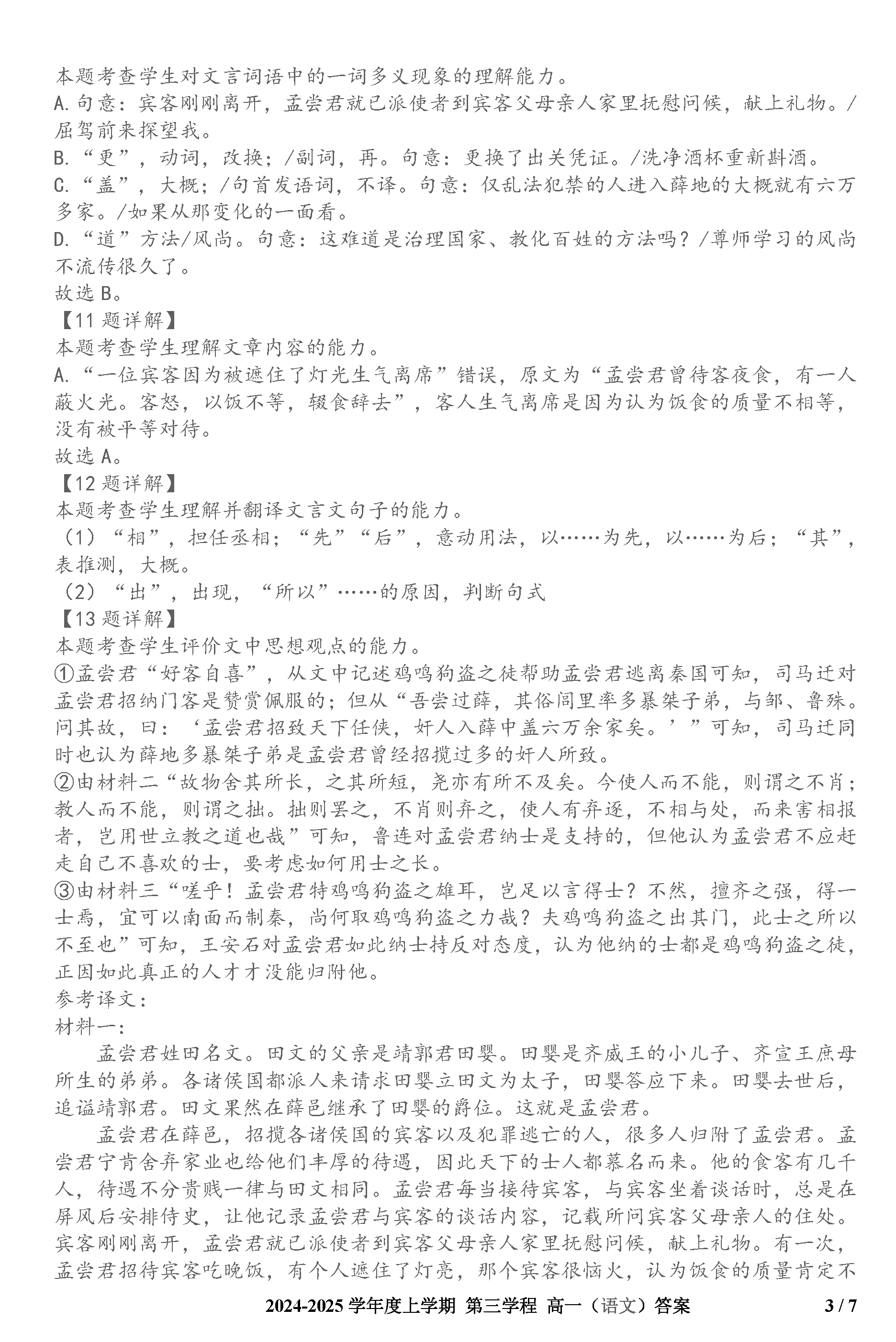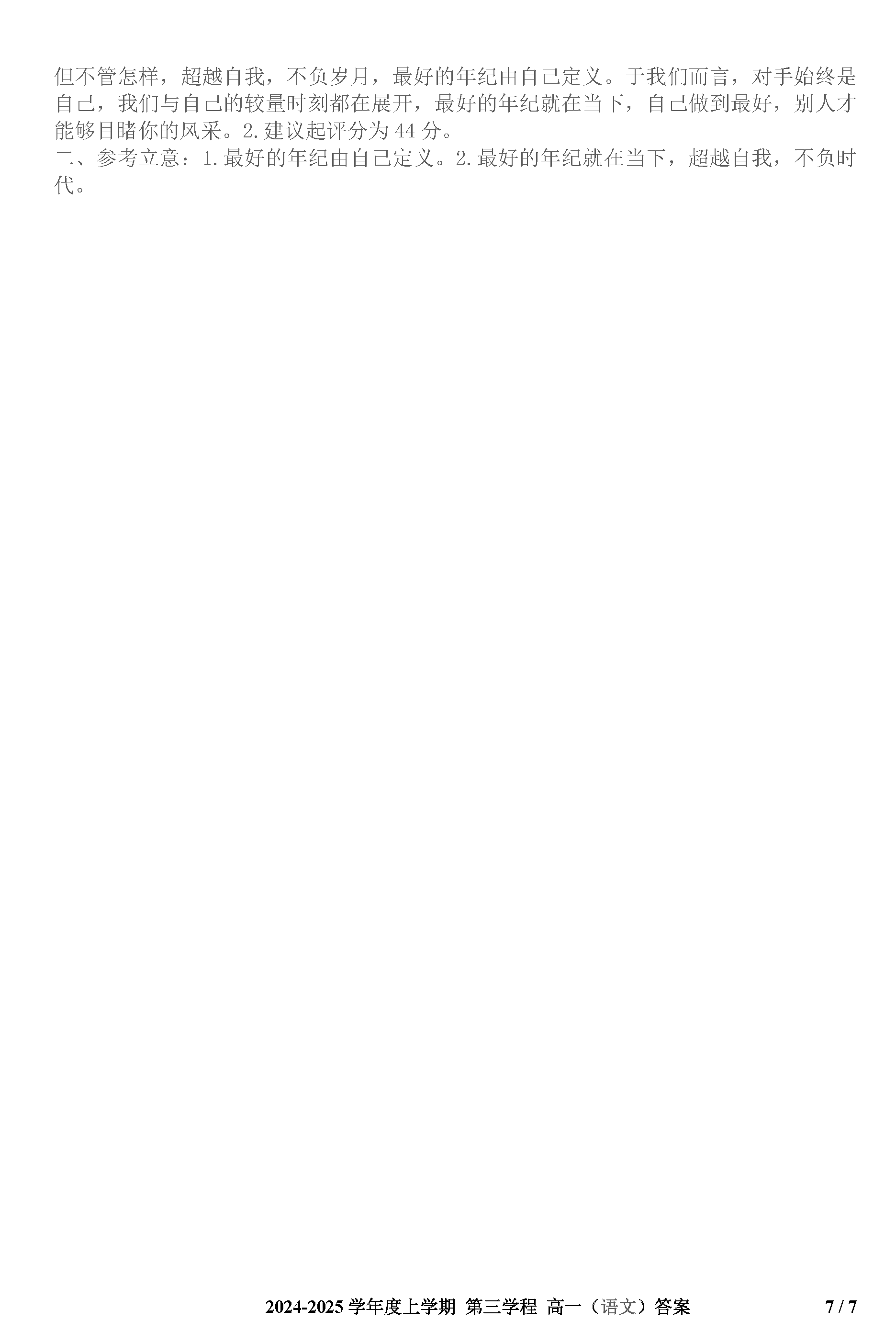 长春十一高中2024-2025学年高一上学期第三学程考语文试题及答案