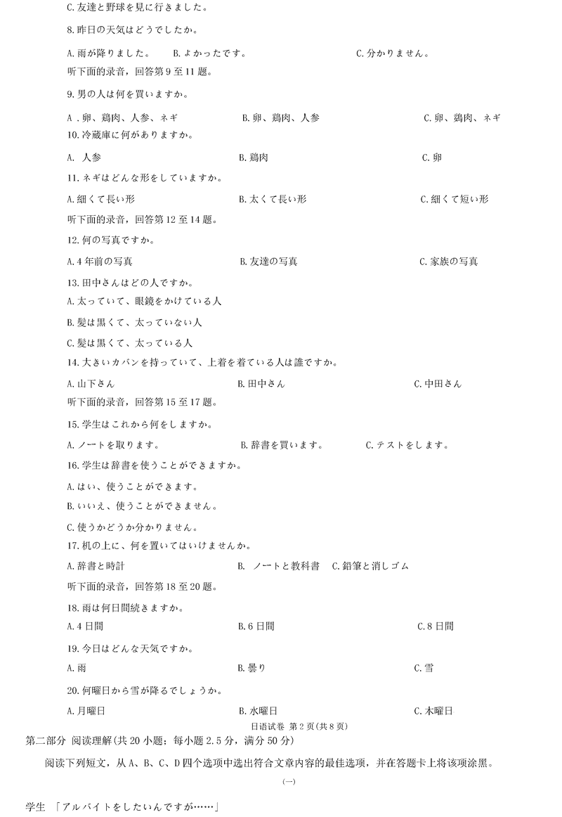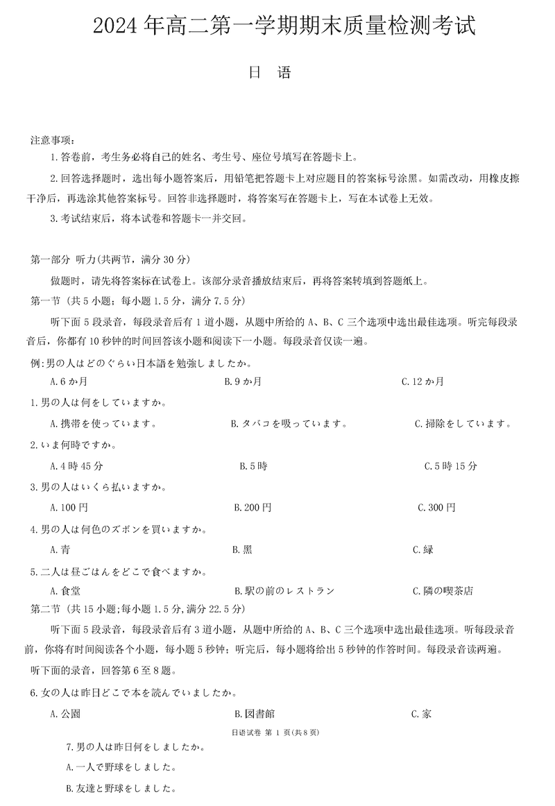 湖南炎德英才名校联合体2024-2025学年高二上学期期末联考日语试题及答案