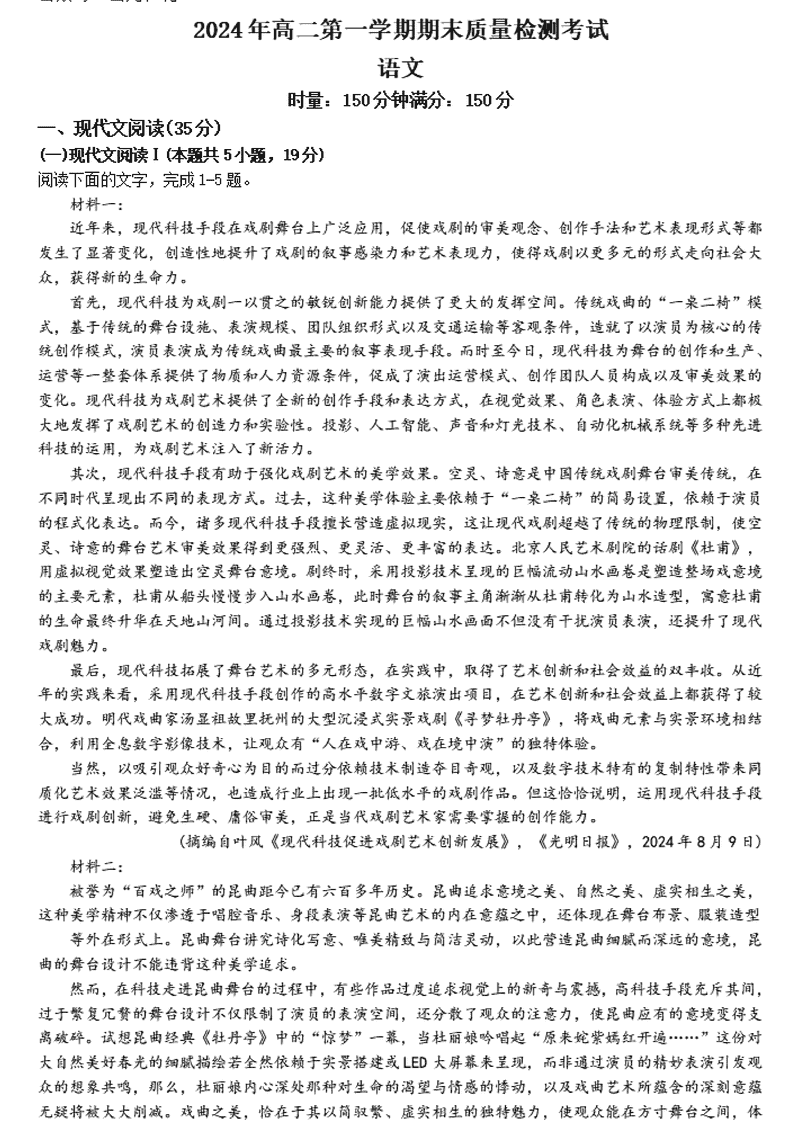湖南省炎德英才名校联合体2024-2025学年高二上学期期末联考语文考试已于近日开考,为方便考生考后及时查看考试情况,查漏补缺、弥补不足,本文整理了试题答案解析相关信息!