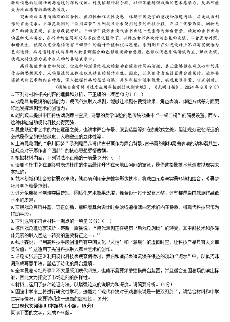 湖南炎德英才名校联合体2024-2025学年高二上学期期末联考语文试题及答案
