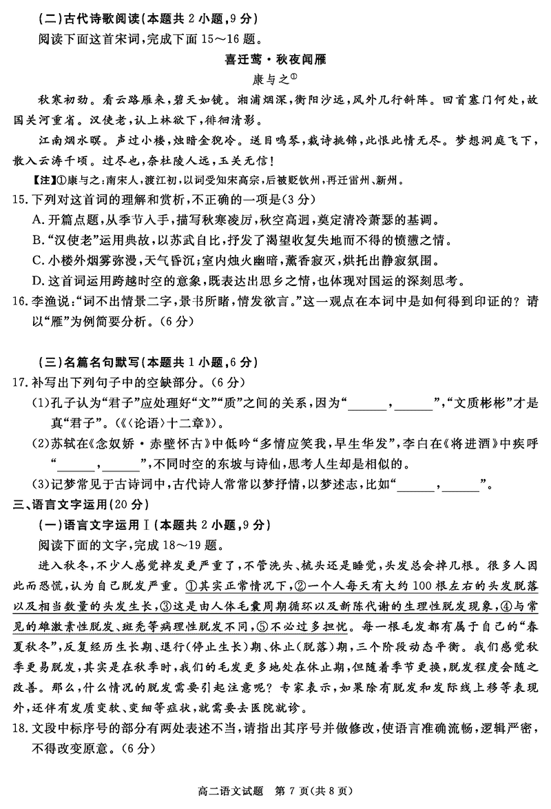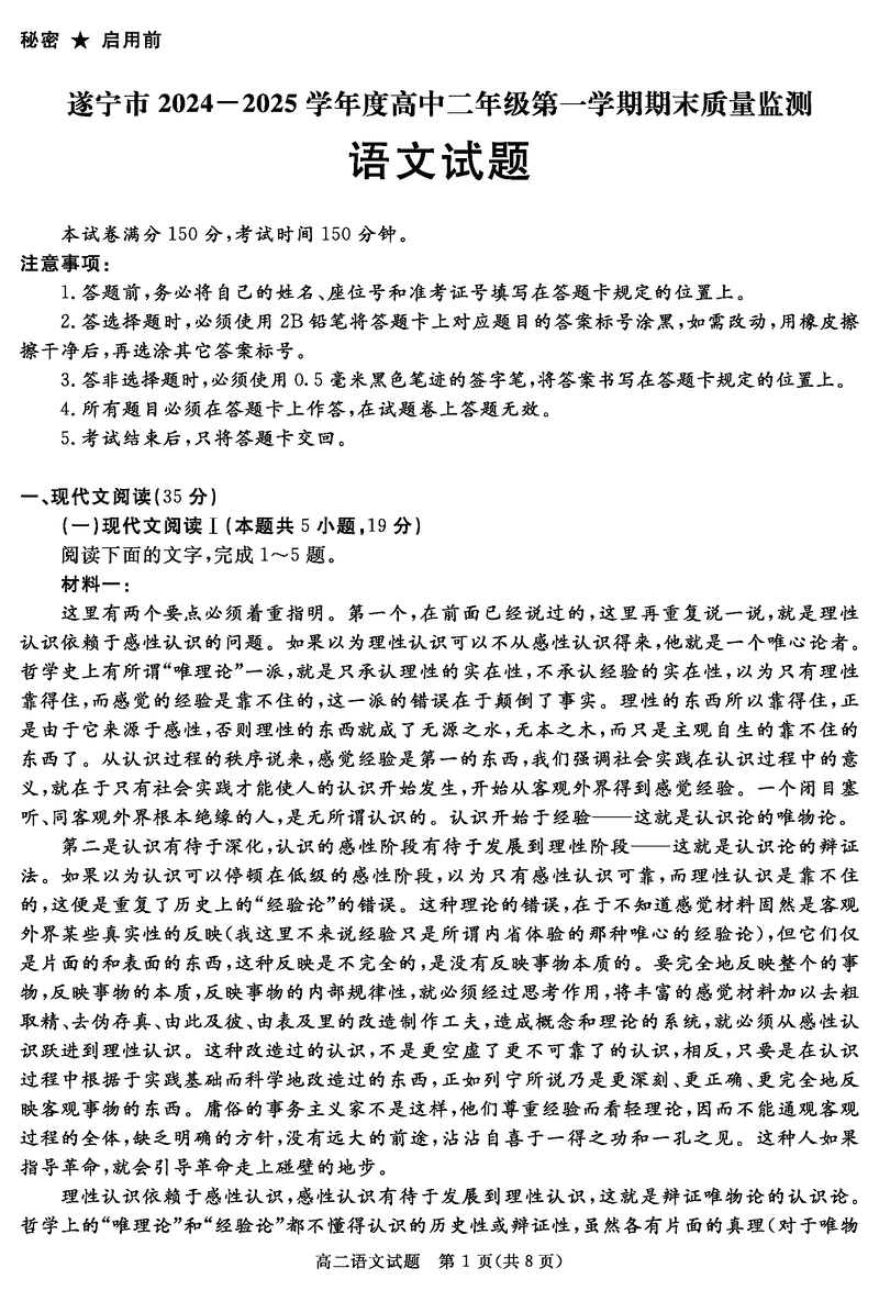 四川遂宁2024-2025学年高二上学期期末语文试题及答案 时间:2025-01-27 四川 高中语文 四川遂宁2024-2025学年高二上学期期末语文考试已于近日开考,为方便考生考后及时查看考试情况,查漏补缺、弥补不足,本文整理了试题答案解析相关信息! 语文试题及答案解析